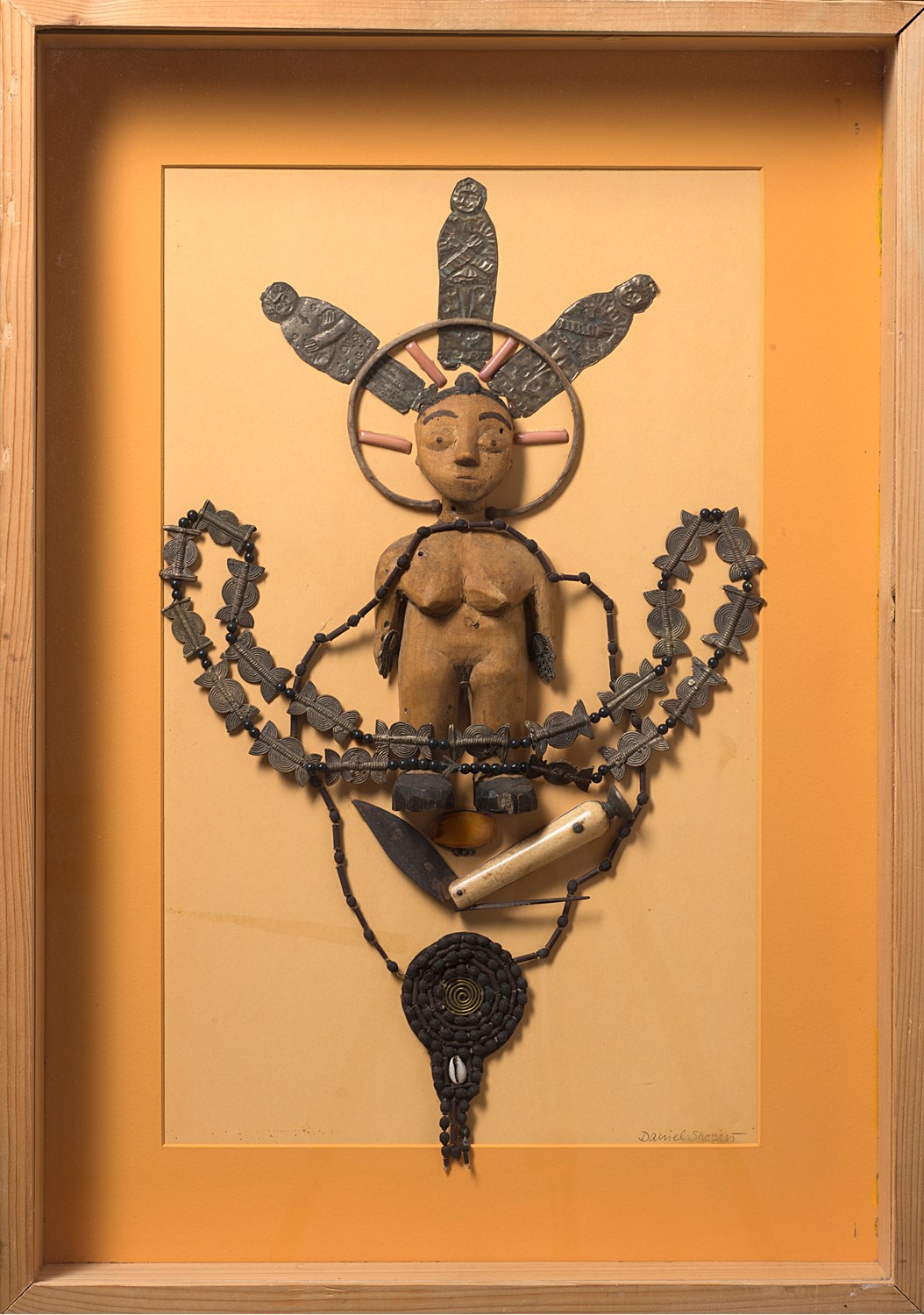 Daniel Spoerri Ewe Puppe Togo 2007/2009 tecnica mista su cartoncino entro cornice a cassetto con vetro cm 68x48x8