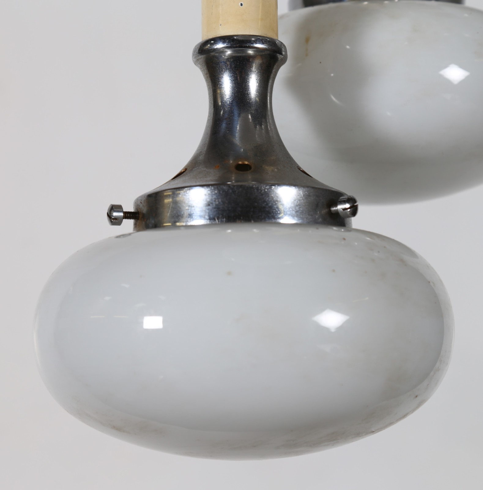 MANIFATTURA ITALIANA Lampadario sette luci. Vetro, metallo cromato e laccato. Cm 40,00 x 100,00 x 40,00. Metallo cromato e laccato, vetro.