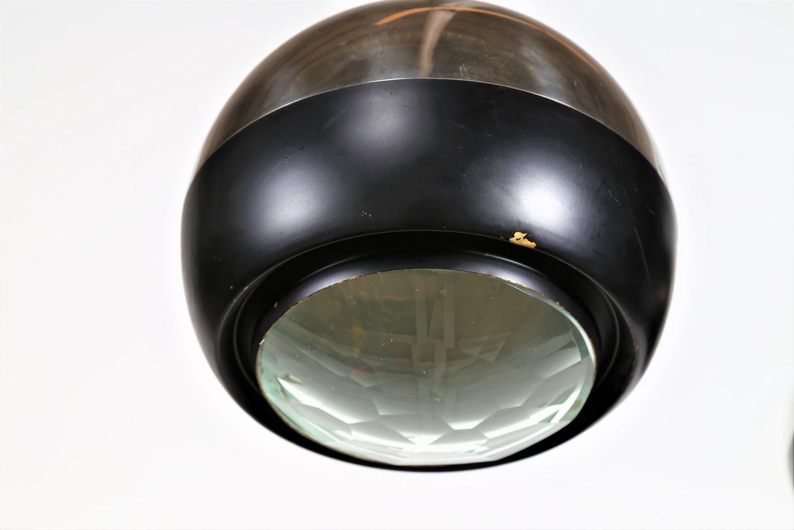 STILNOVO Pair of ceiling lamps. . Cm 26,00 x 42,00 x 26,00. Lacquered metal, chromed metal and glass, 60s.