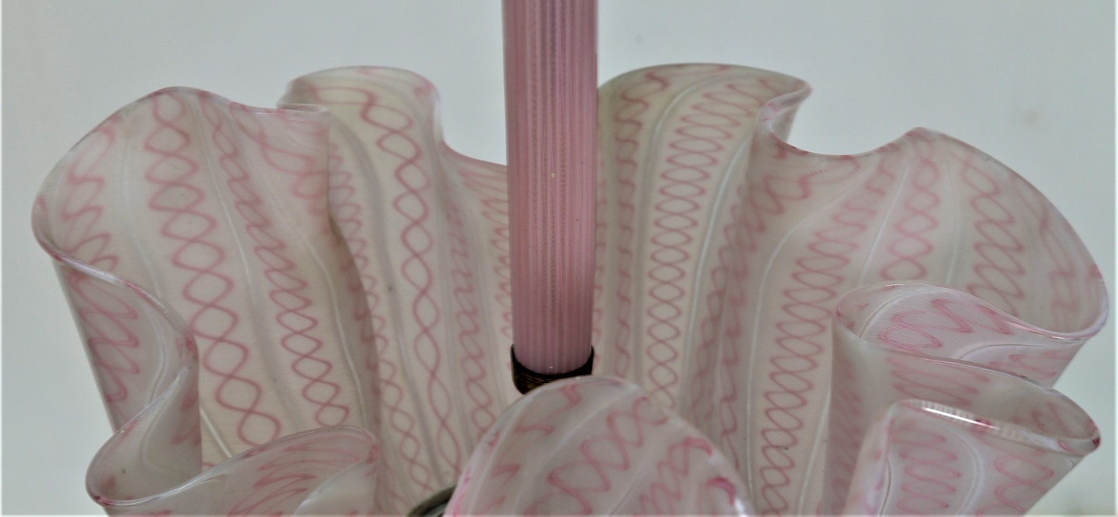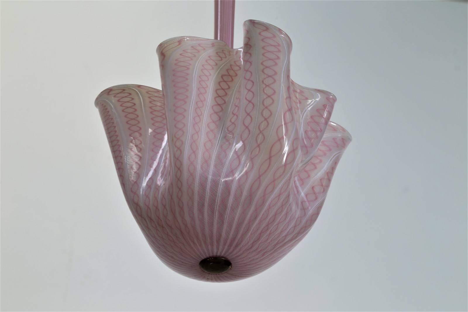 VENINI Ceiling lamp mod. Fazzoletto. Glass and brass. Cm 32,00 x 60,00. Zanfiric glass and brass, 40s.