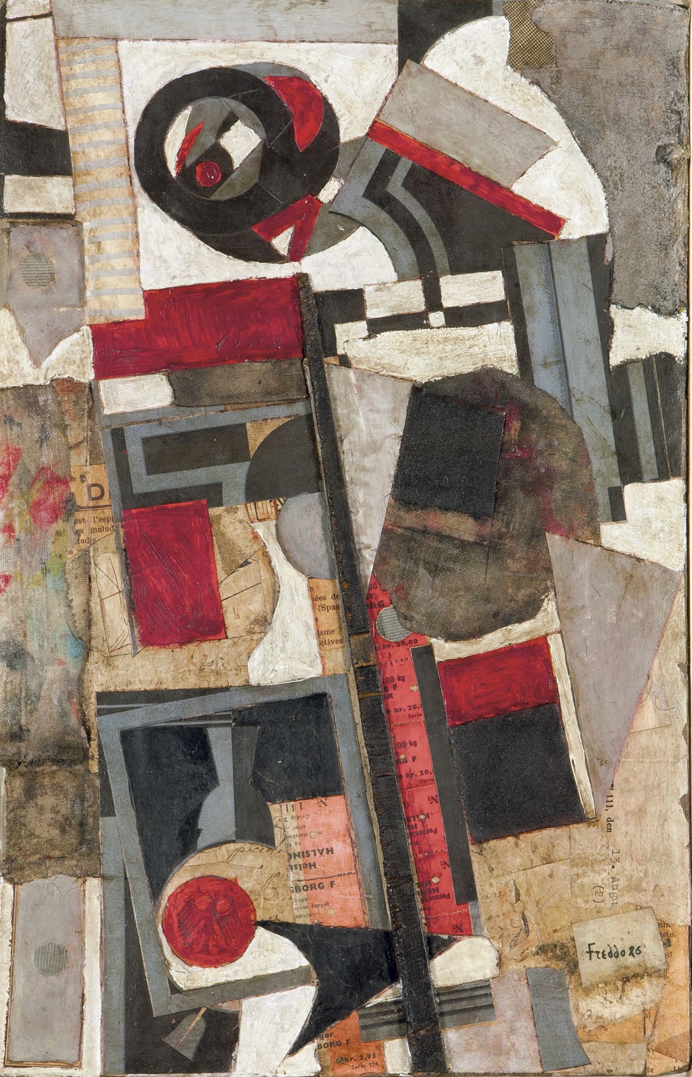 BORTOLUZZI ALFREDO (FREDDO) D 1905 - 1995 Peschici (FG) "Senza titolo" 1929 39,5x25 tecnica mista e collage su cartone Opera firmata e datata in basso a destra