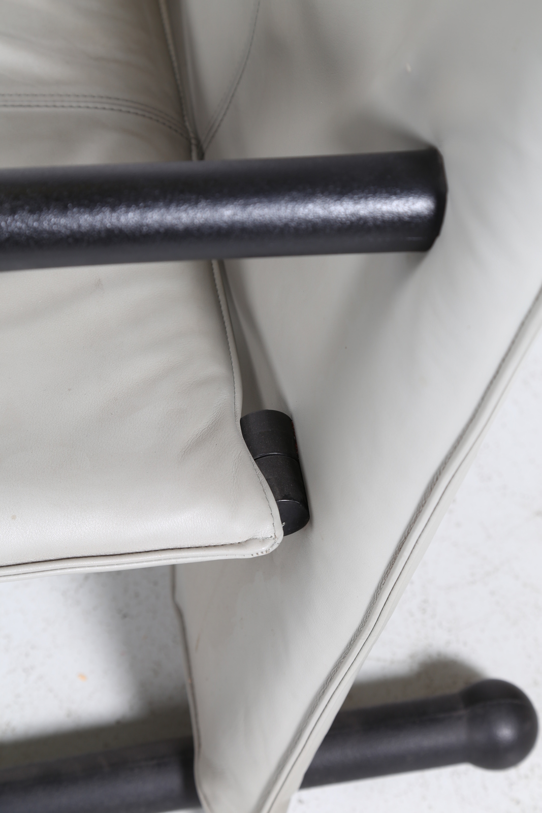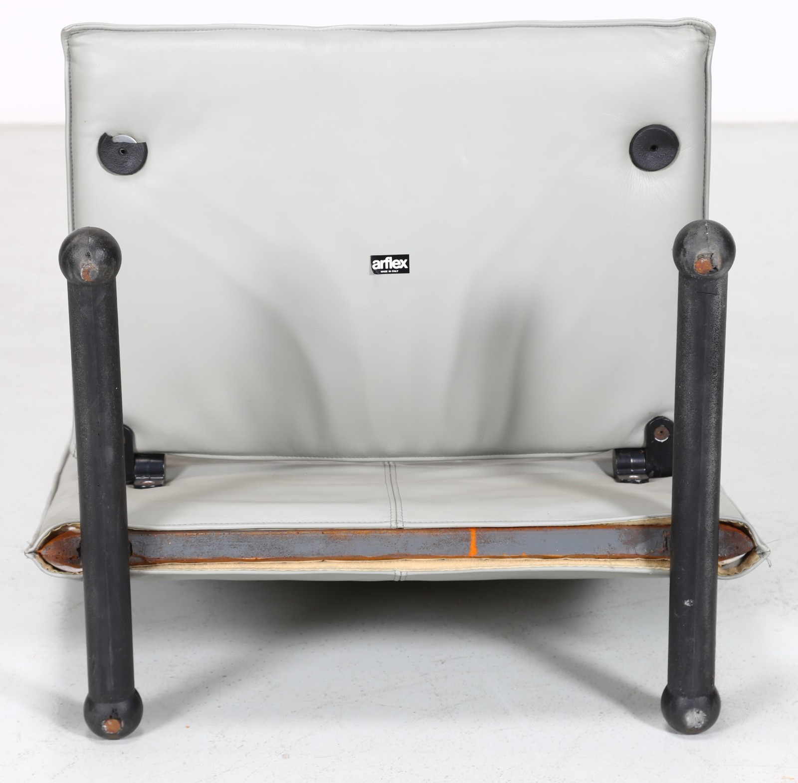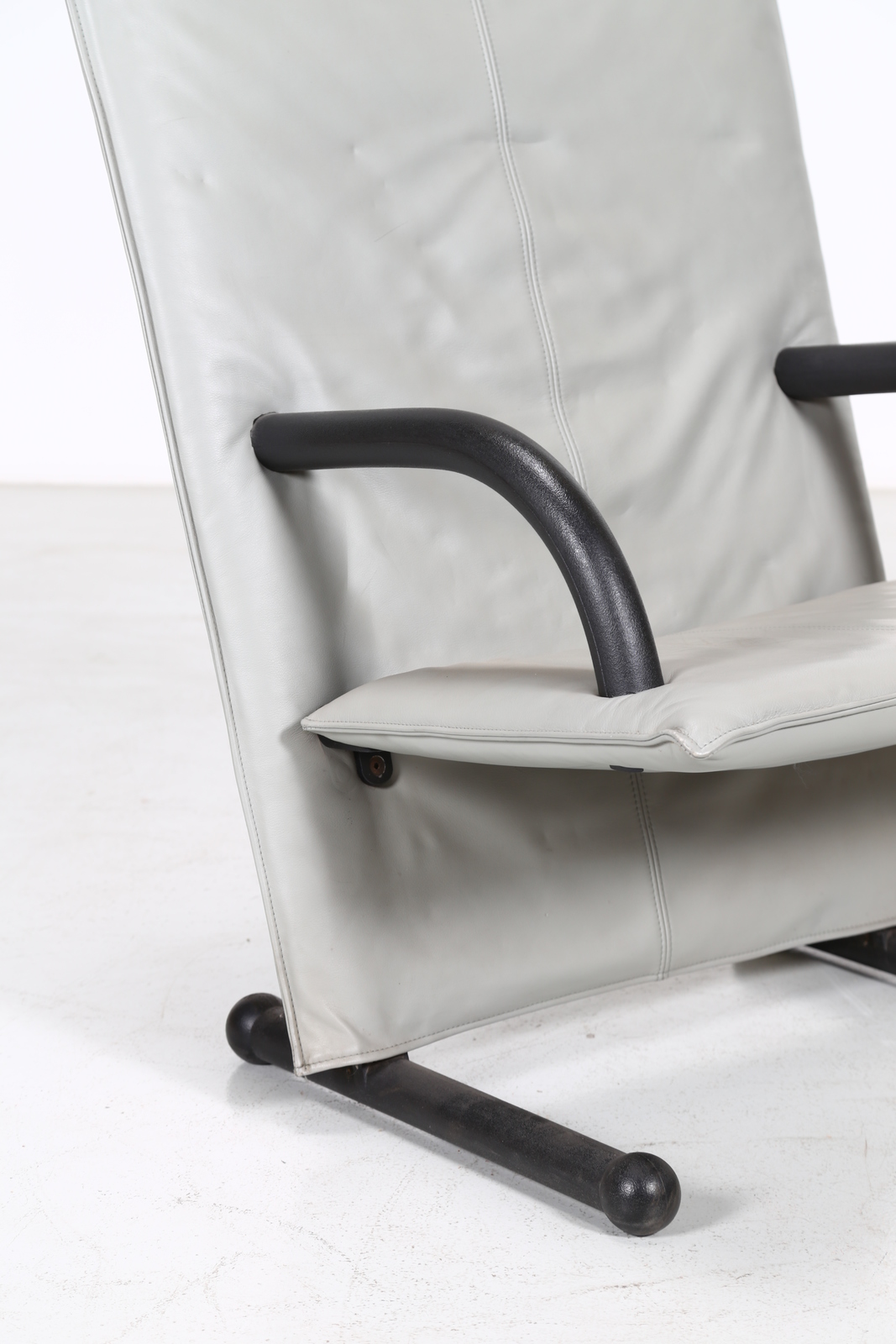 BURKHARD VOGTHERR Coppia di poltrone mod. T-Line. Pelle e ferro. Cm 76,00 x 101,00 x 76,00. Pelle e ferro, per Artflex, etichetta presente, 1984.