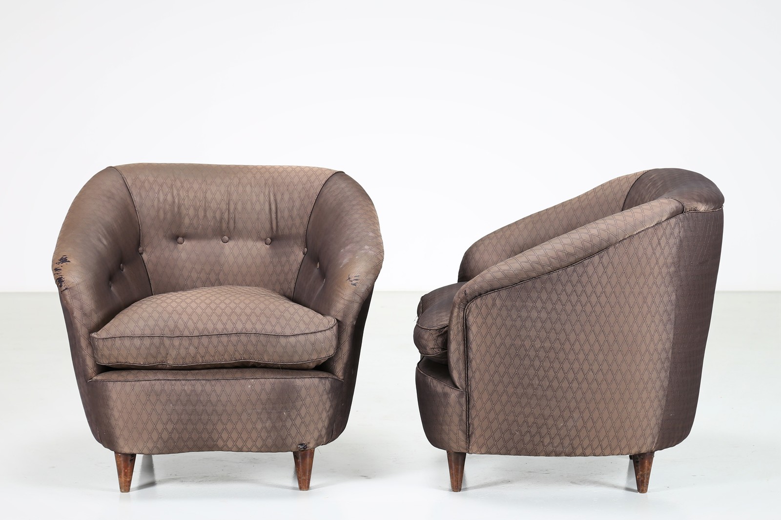 . Wood and fabric. Cm 85,00 x 77,00 x 80,00. Wood and fabric, for Casa e Giardino, 50s.