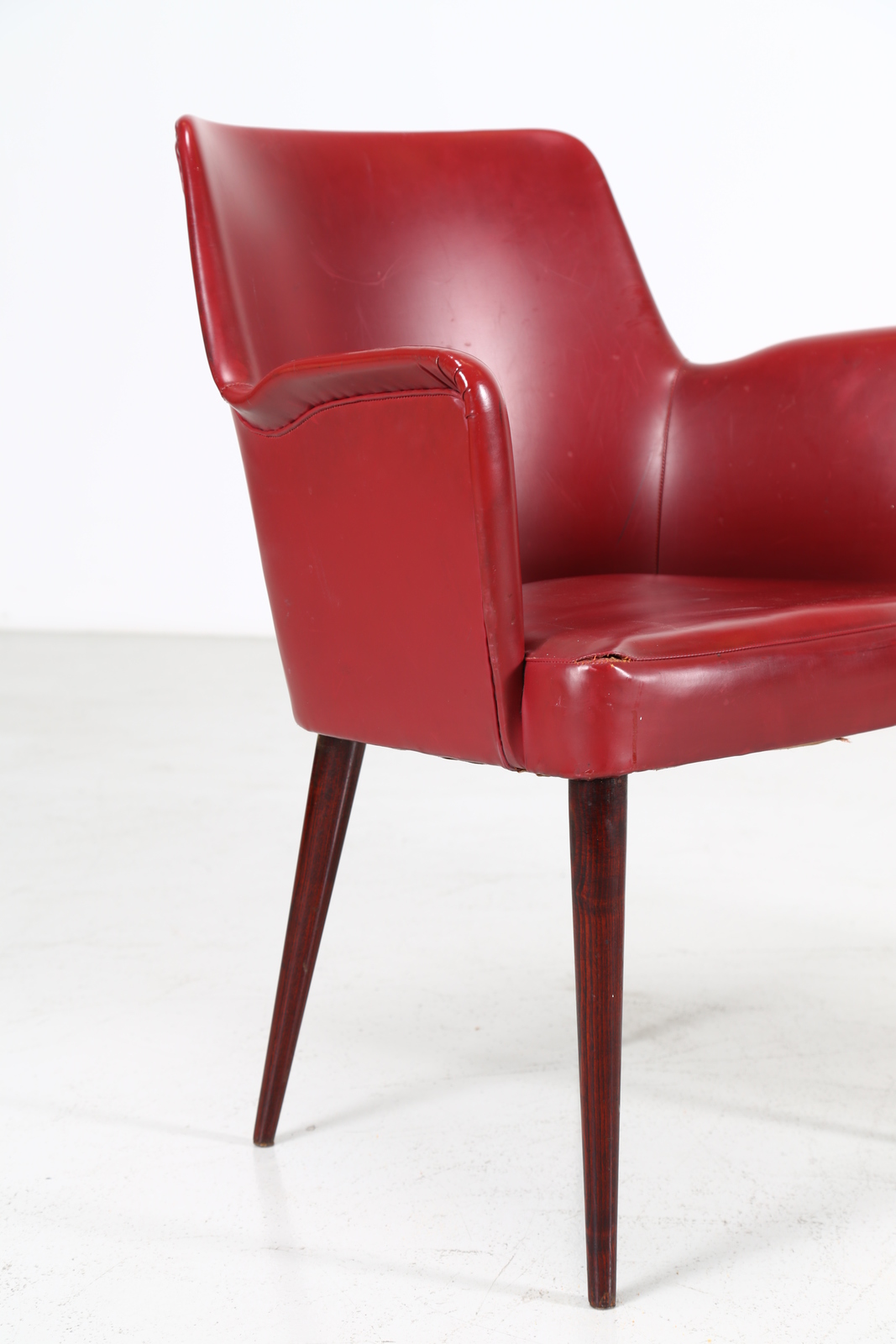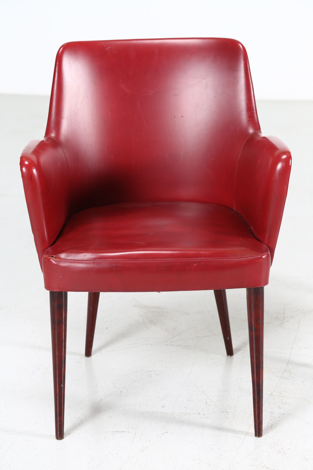 BORSANI OSVALDO (1911 - 1985) Coppia poltroncine mod. P35. Skai e legno. Cm 58,00 x 80,00 x 56,00. Legno e skai, per Arredamenti Borsani Varedo, anni 50.