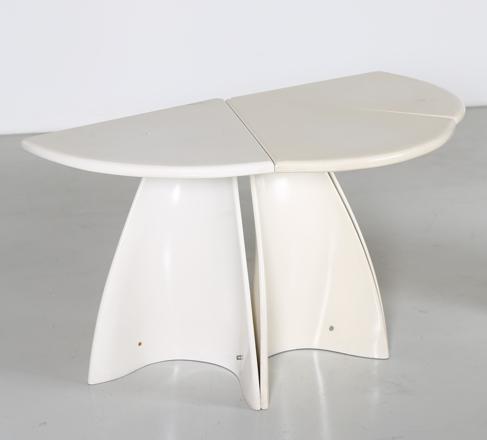 ITALIAN MANUFACTURE Modular table. Fibreglass. Cm 135,00 x 74,00 x 135,00. Lacquered fiberglass, 60s.
