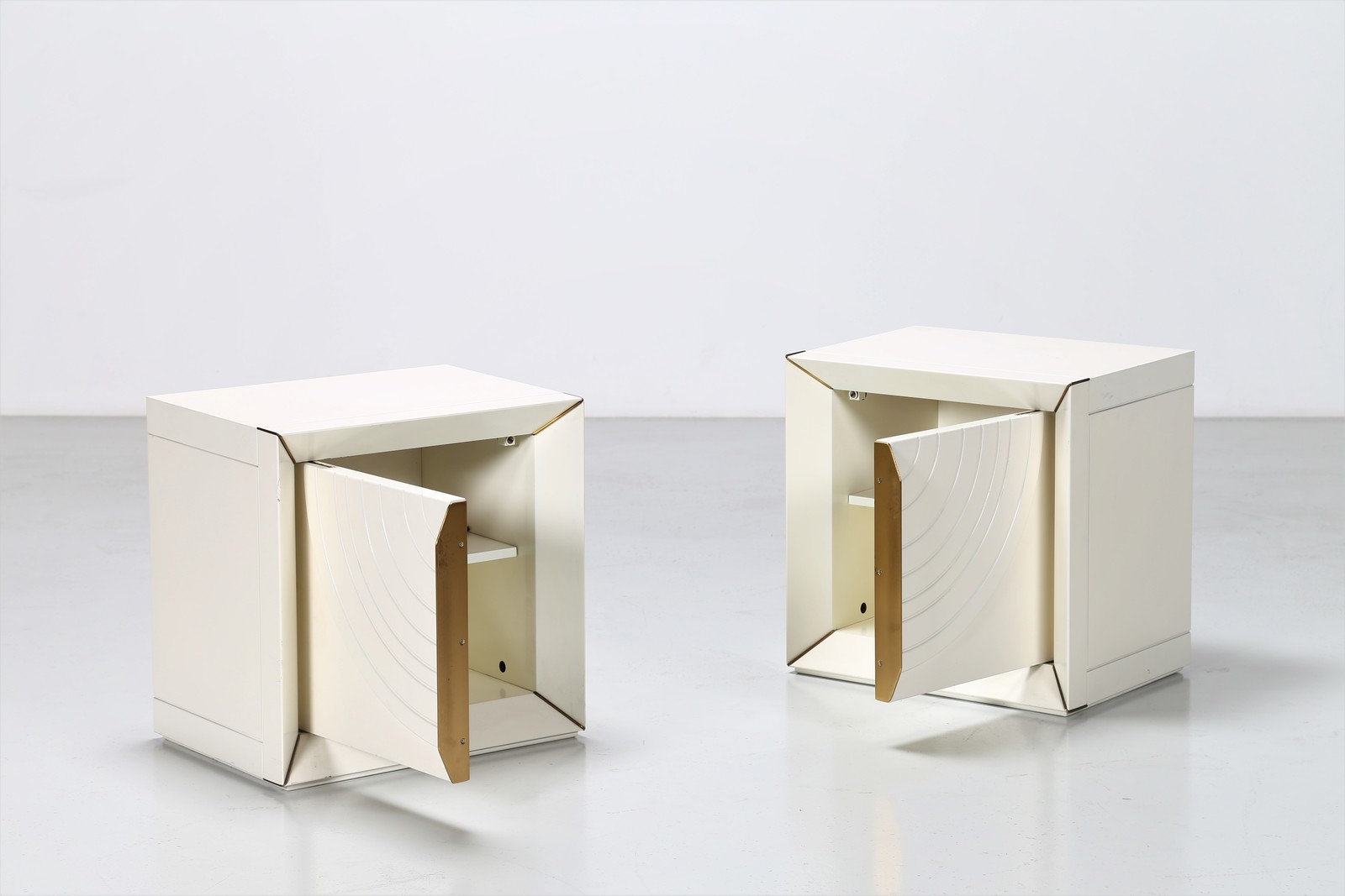 FRIGERIO DI DESIO Pair of bedside tables. Lacquered wood and brass. Cm 54,50 x 54,50 x 41,00. Lacquered wood and brass, 60s.