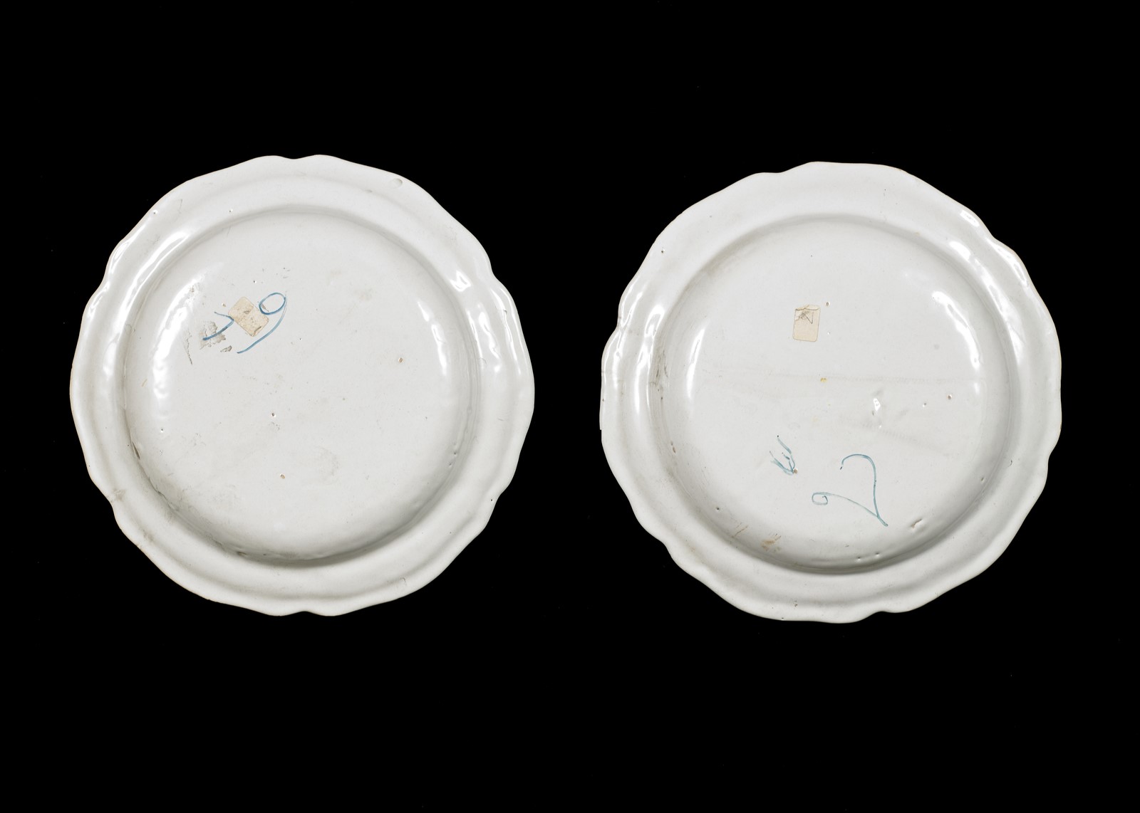 MANIFATTURA VENETA DEL XVIII SECOLO Coppia di piatti in maiolica decorati a...
