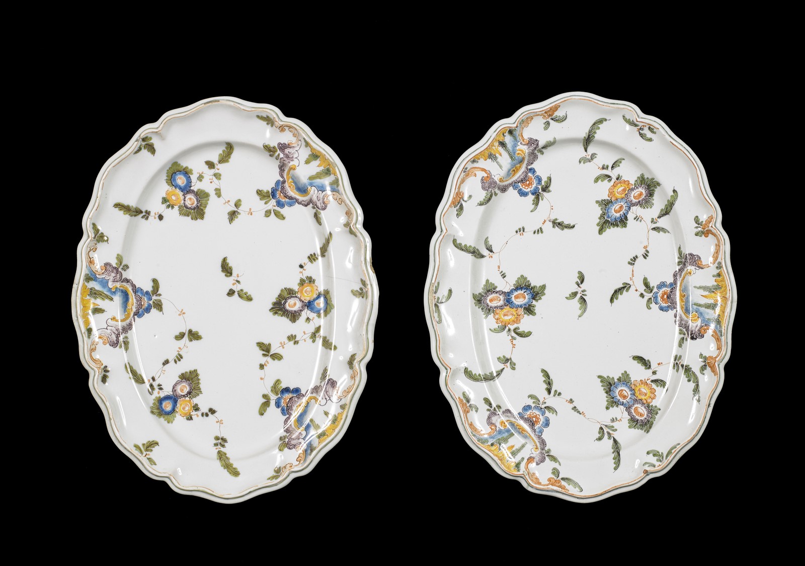 MANIFATTURA VENETA DEL XVIII SECOLO Coppia di piatti in maiolica decorati a...