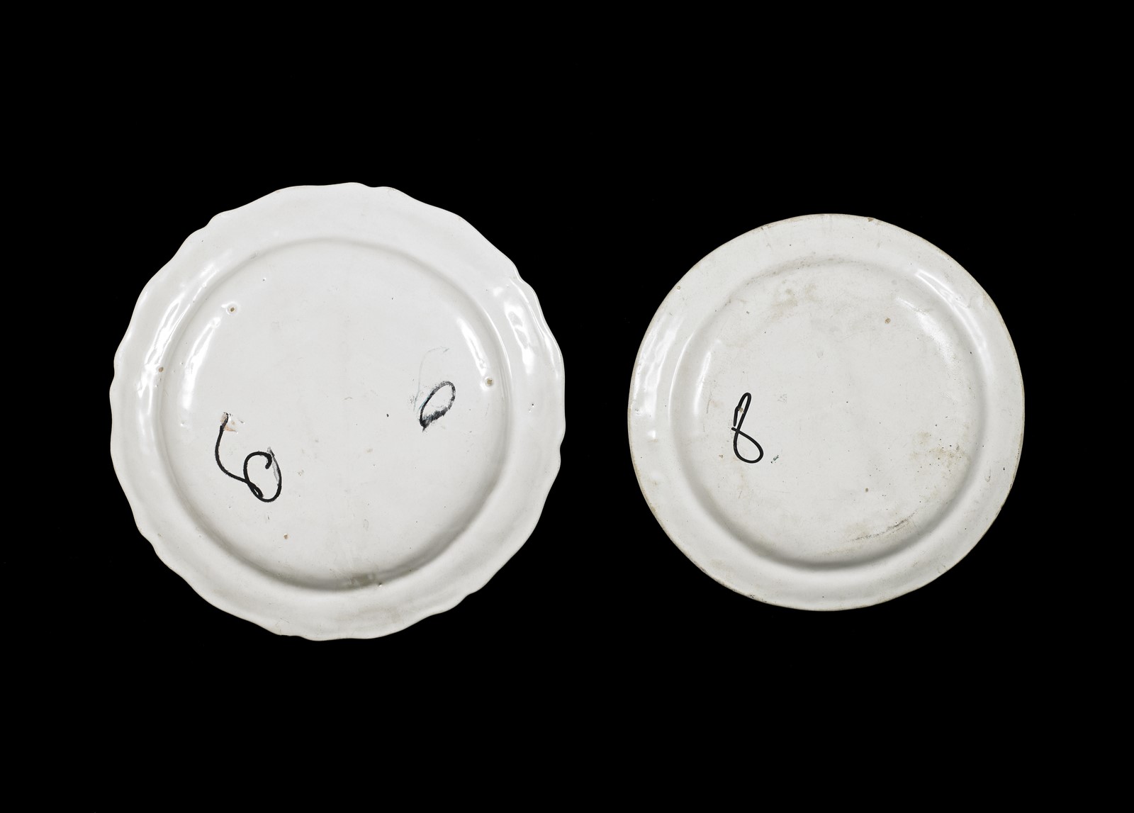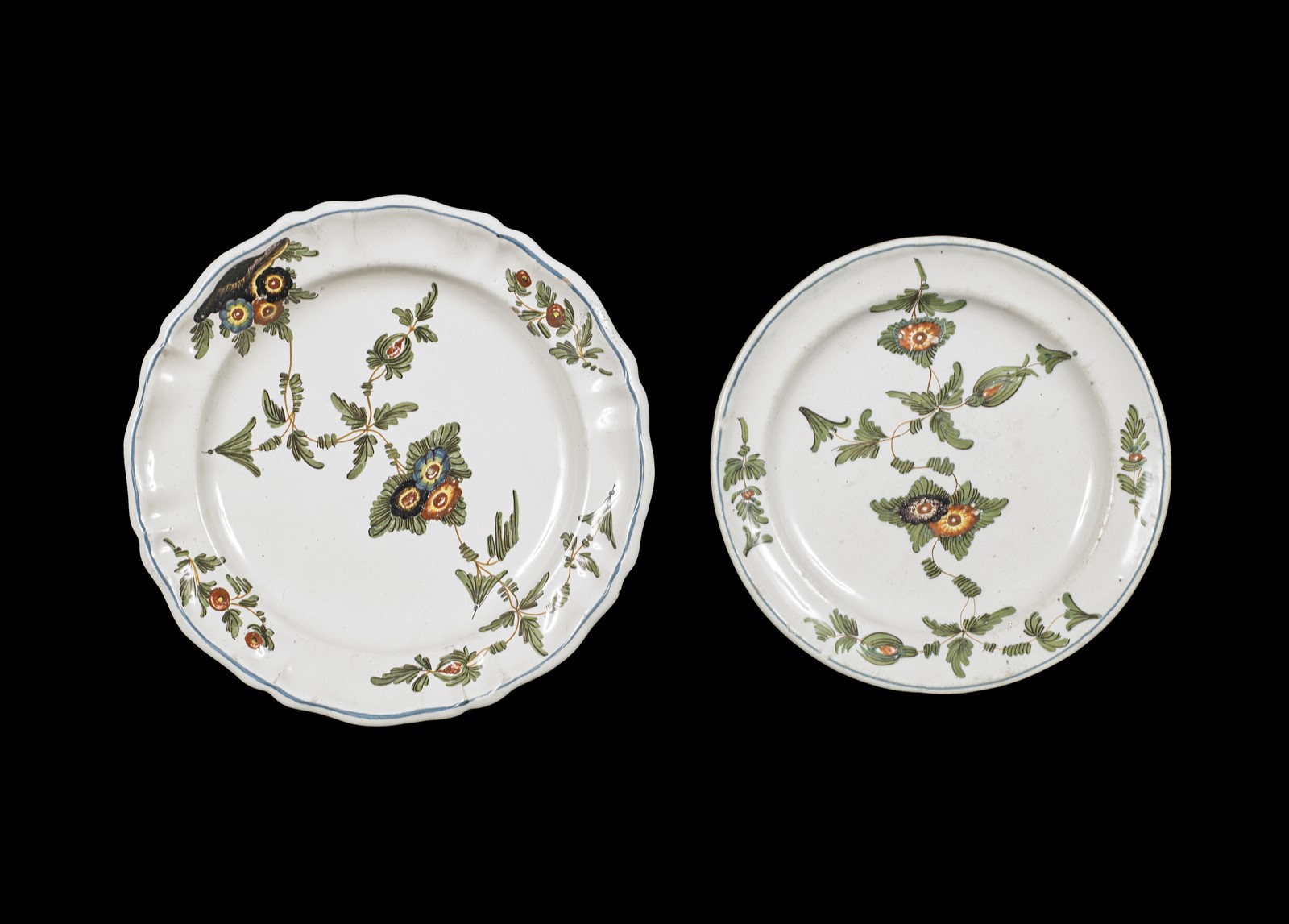 MANIFATTURA VENETA DEL XVIII SECOLO Coppia di piatti in maiolica decorati a...