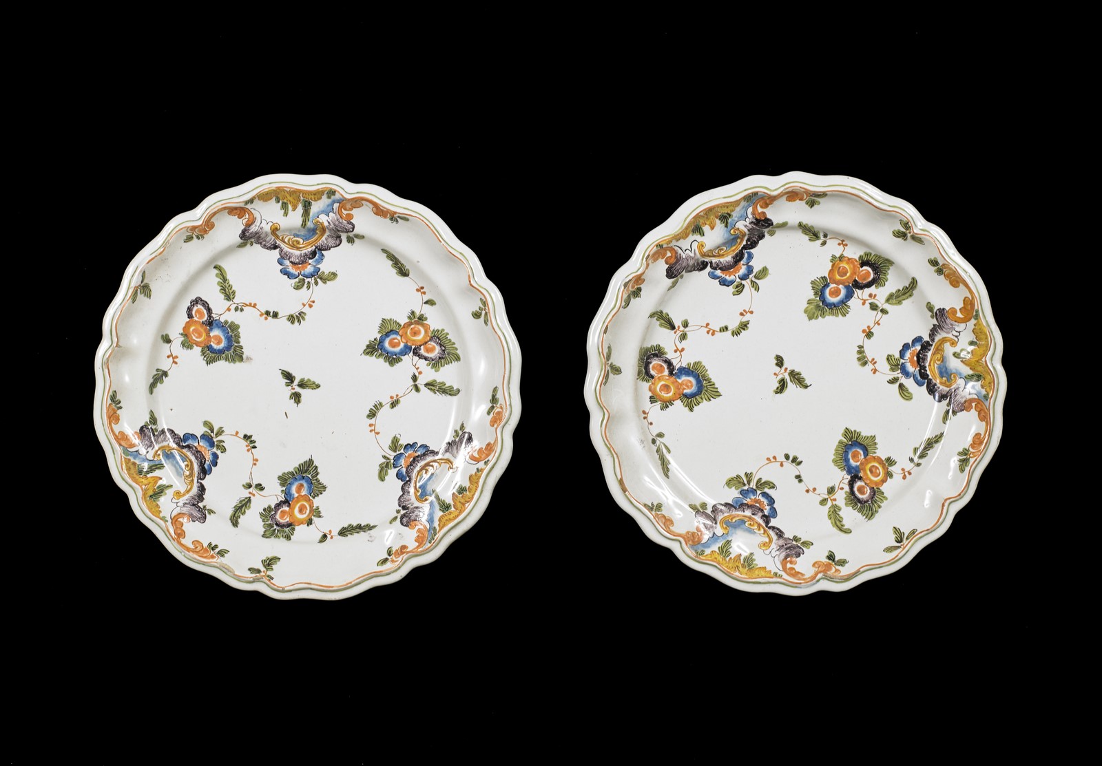 MANIFATTURA VENETA DEL XVIII SECOLO Coppia di piatti sagomati in ceramica...