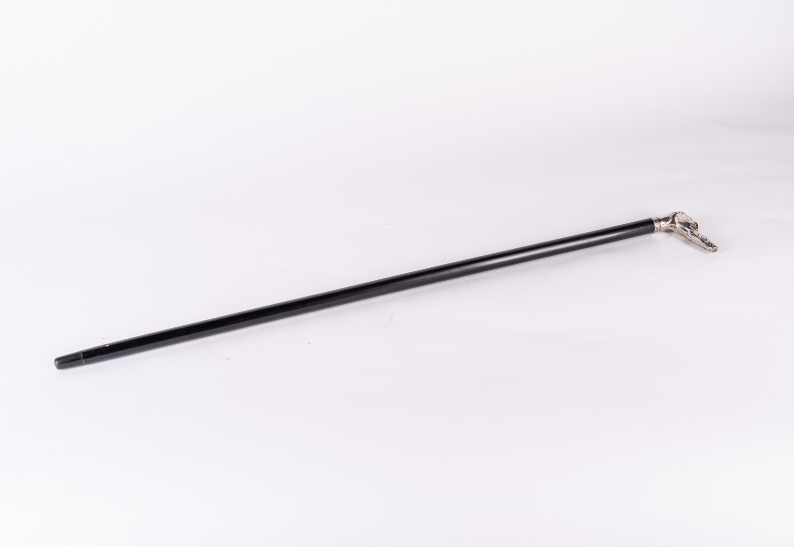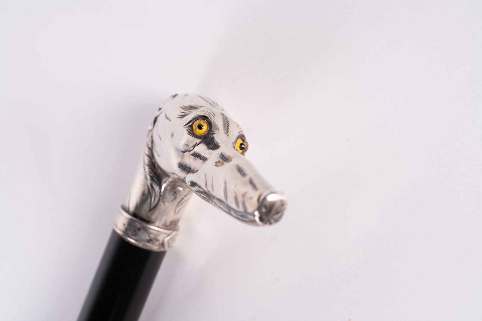 ARGENTIERE ITALIANO DEL XX SECOLO Bastone da passeggio con manico in argento a forma di levriero. . Cm 87,00.