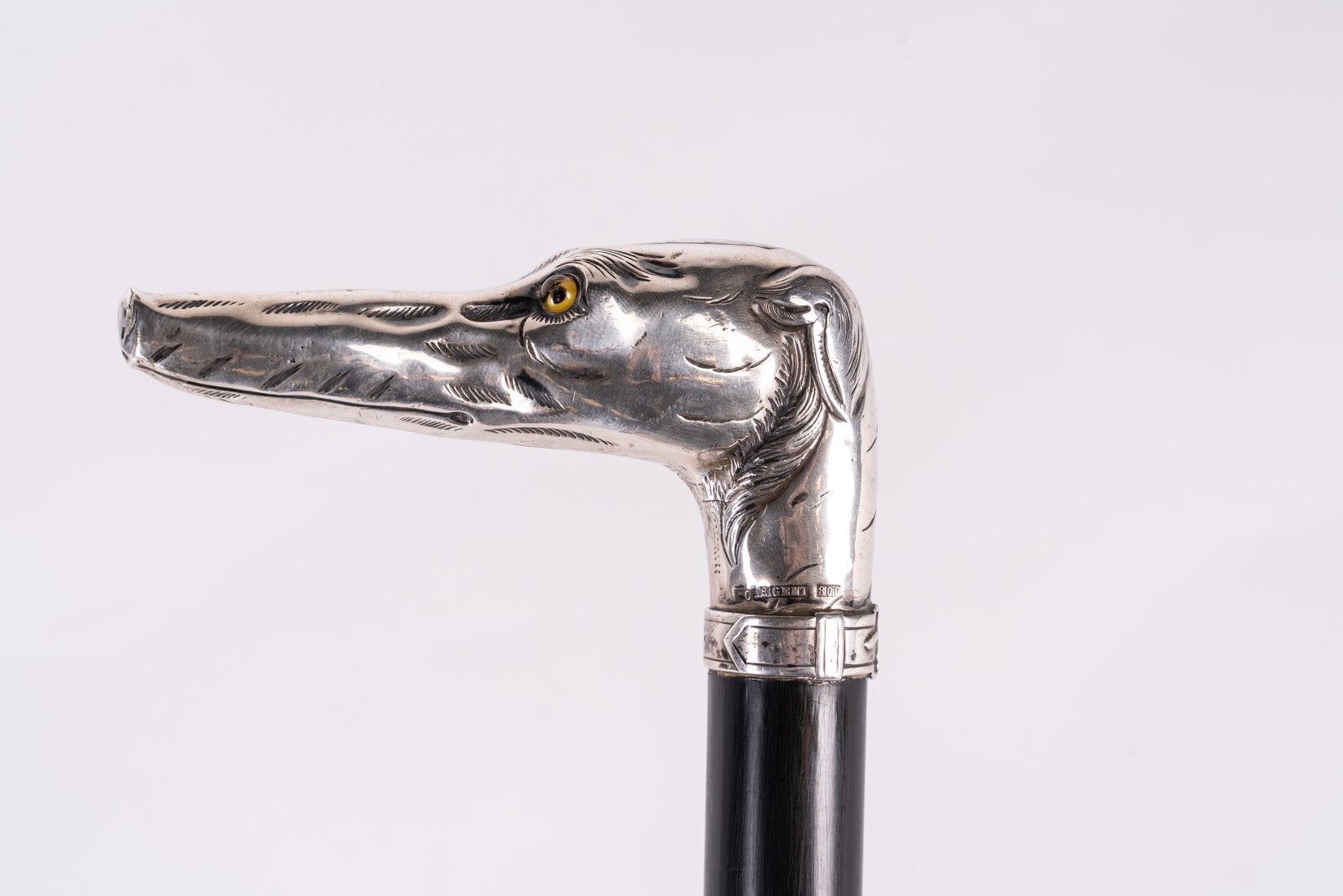 ARGENTIERE ITALIANO DEL XX SECOLO Walking stick with greyhound handle. . Cm 87,00.