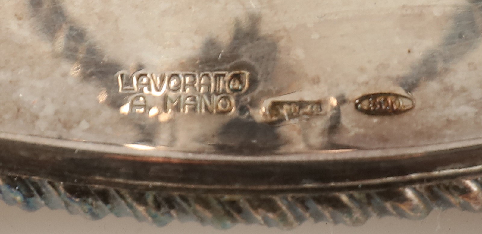 ARGENTIERE DEL XX SECOLO Coppia di candelabri a due fiamme, fusto centrale...