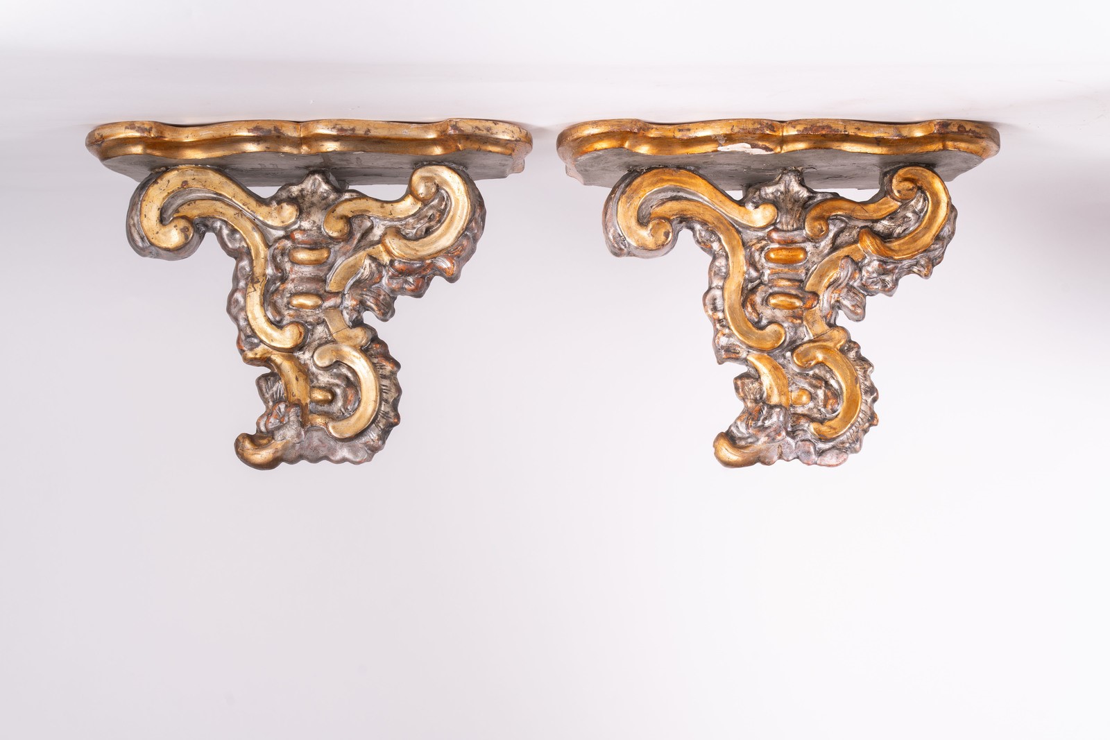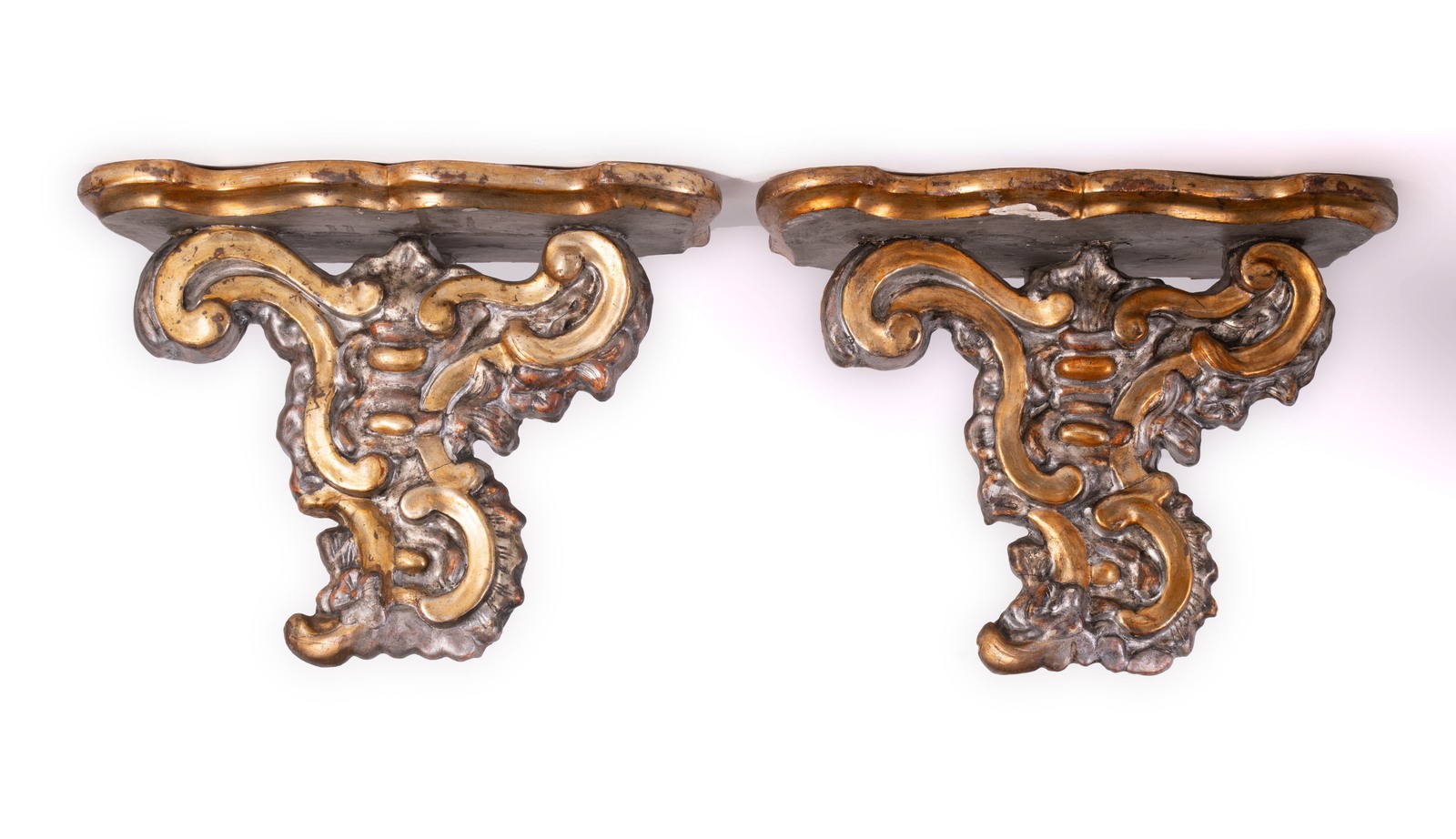 ITALY 17th CENTURY A pair of shelfs in golden wood. . Cm 35,00 x 27,00 x 17,00.