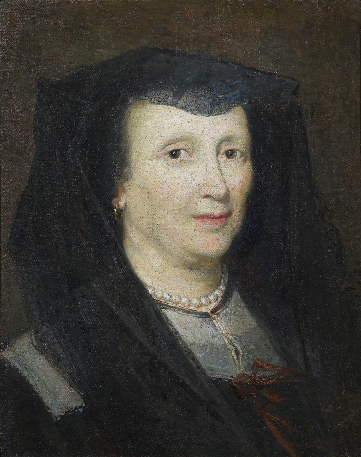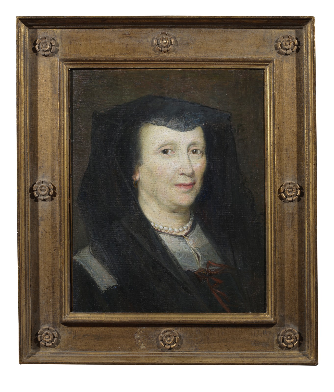 ARTISTA DEL XVII SECOLO Ritratto di Caterina Puliciani. Olio su tela . Cm 39,50 x 50,00. Da Justus Sustermans (1597-1681). Cornice presente