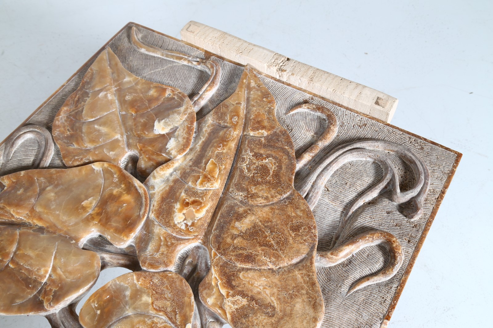 MANIFATTURA ITALIANA Tavolino in alabastro scolpito a motivi floreali. . Cm...