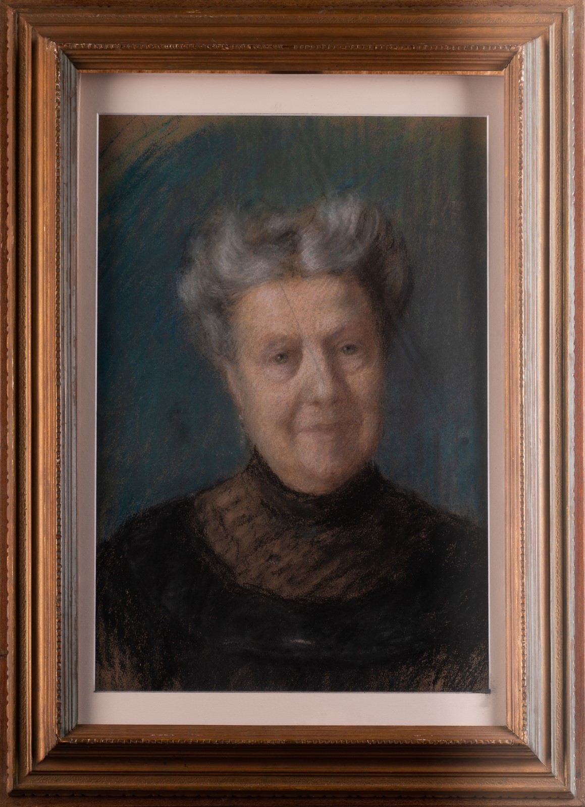 19th CENTURY ARTIST Portrait of woman. Pastel on paper. Cm 32,00 x 50,00. . Cornice presente