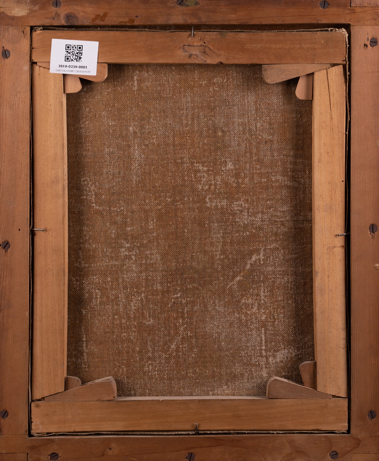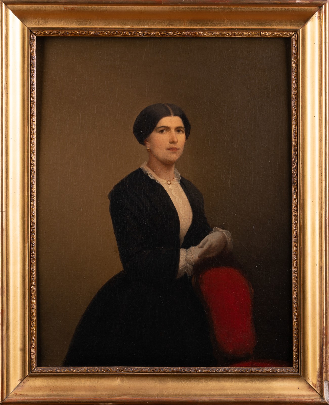 19th CENTURY ARTIST Portrait of woman with gloves. Oil on canvas . Cm 35,00 x 45,00. . Cornice presente