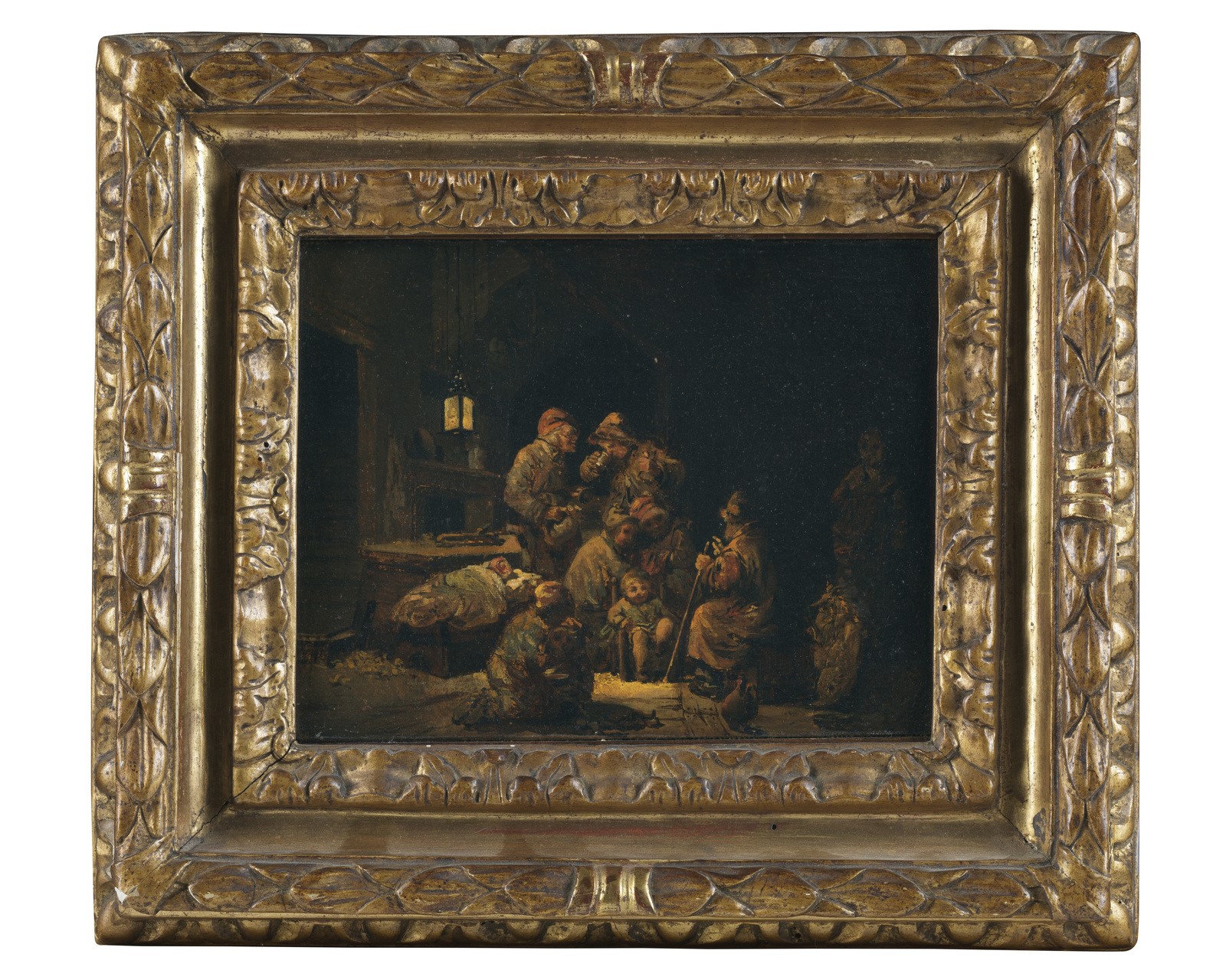 Lot 109 | ARTISTA DEL XIX SECOLO Interno con figure. Olio su tela . Cm 22,00 x 17,00. ....