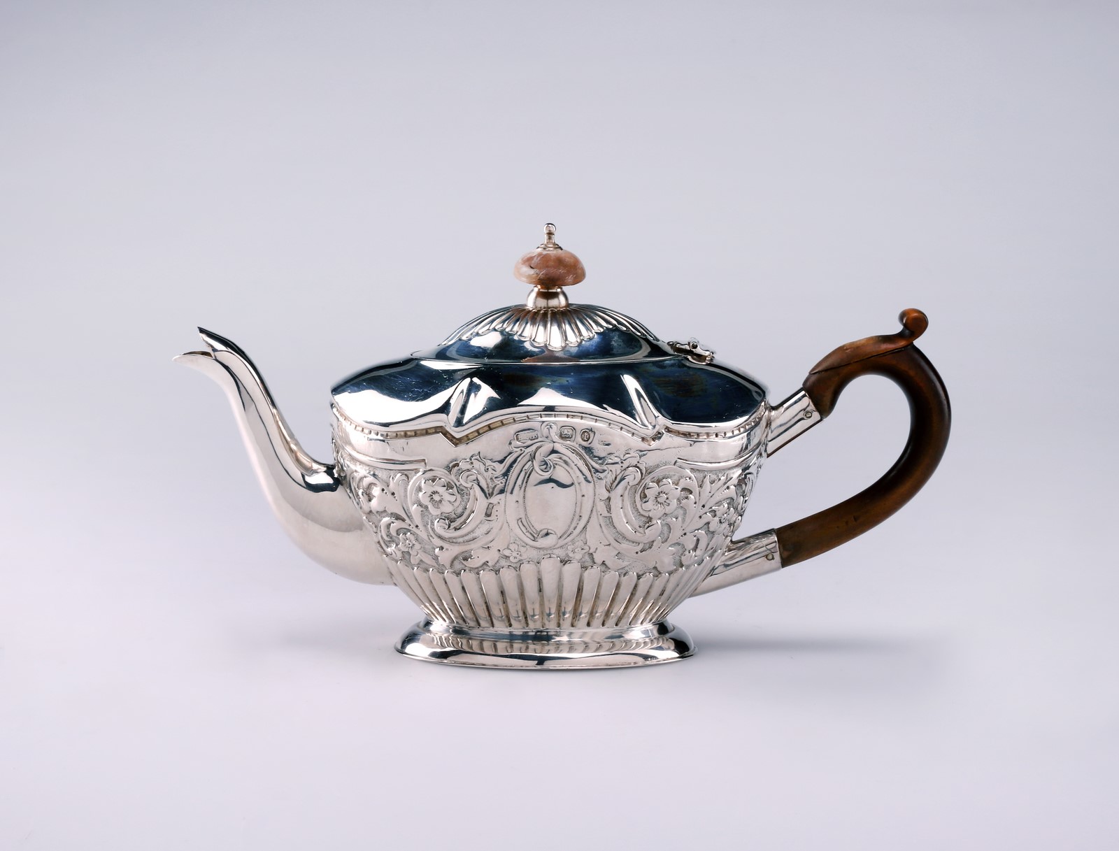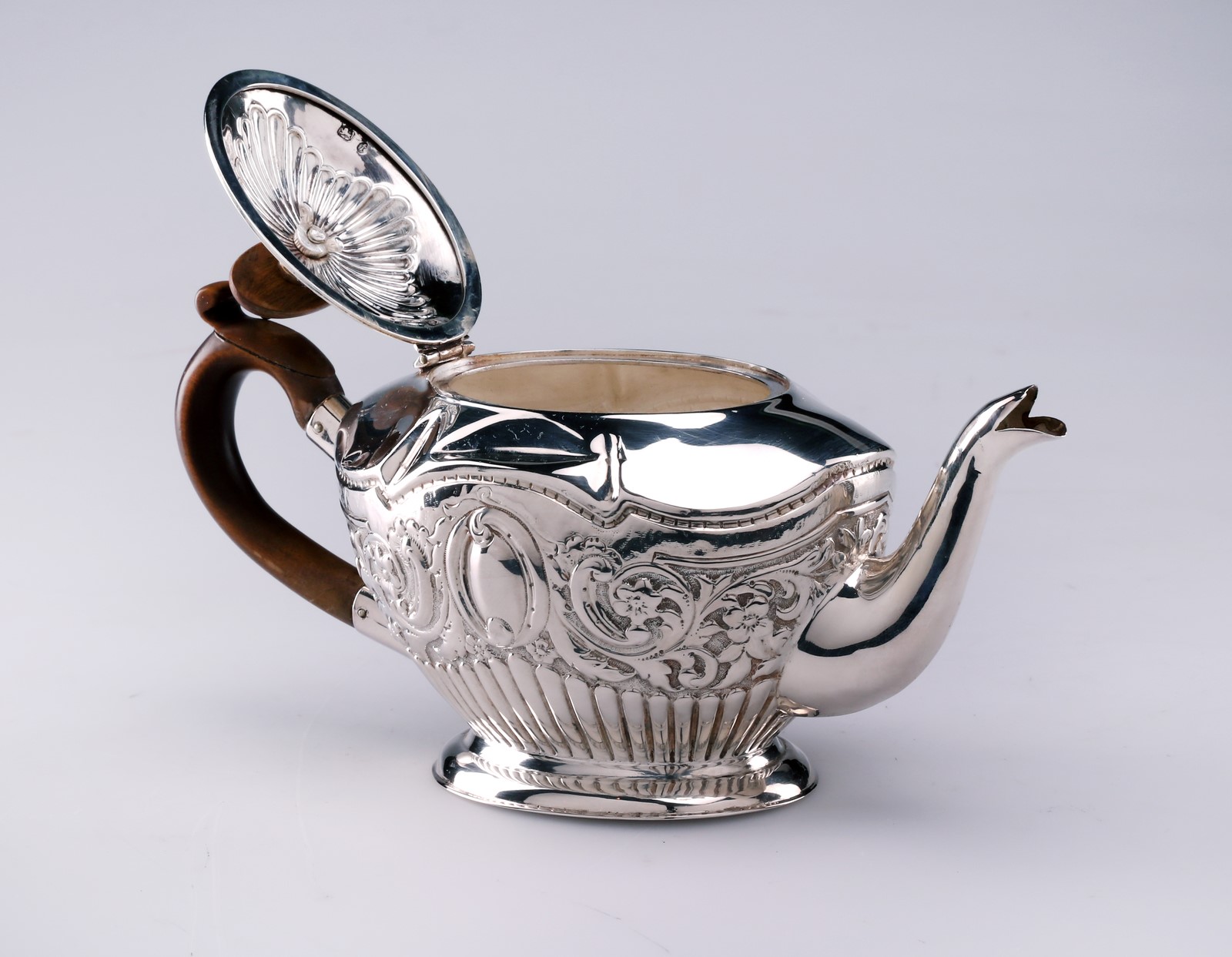 ARGENTIERE INGLESE DEL XIX SECOLO Teiera in argento sbalzato e cesellato. ....