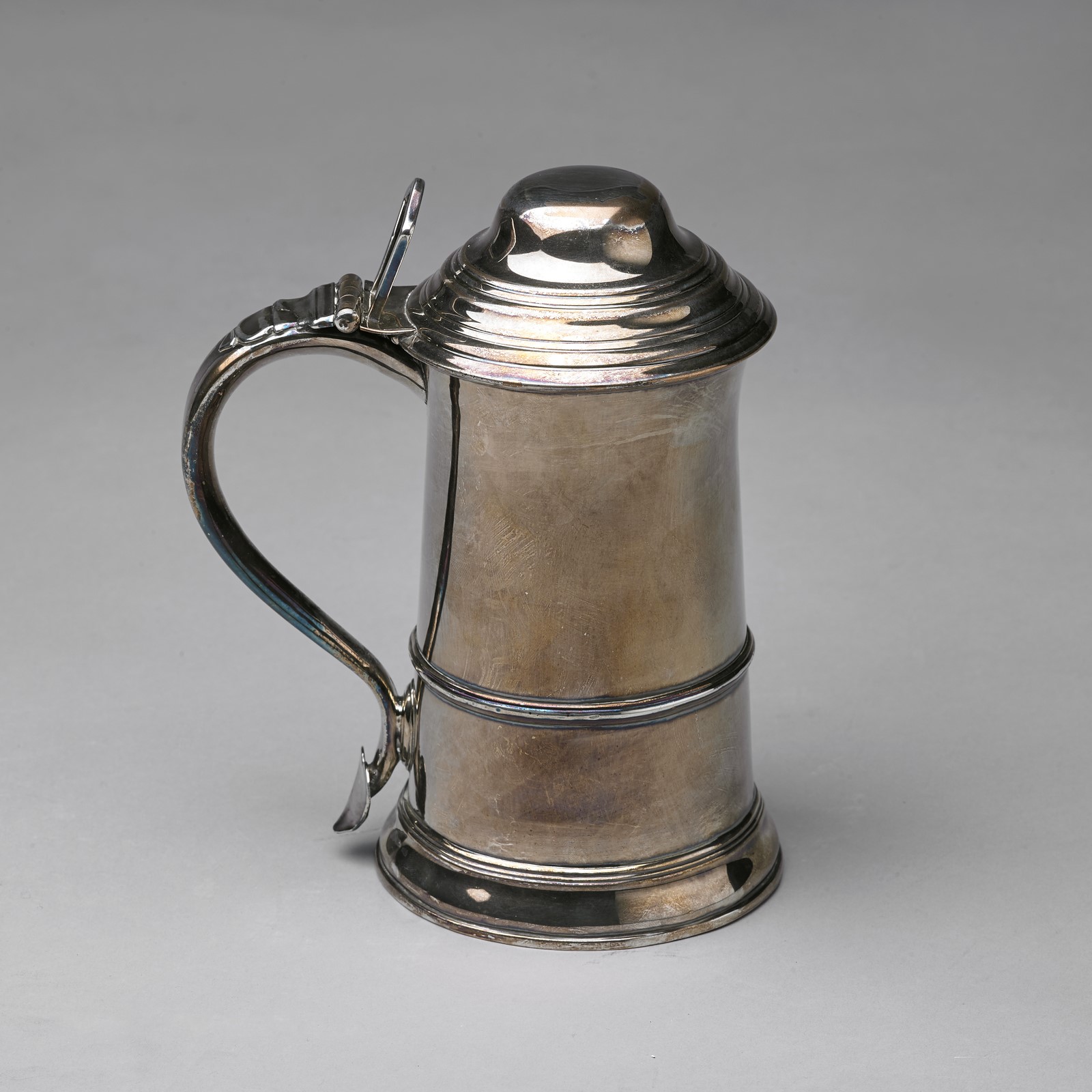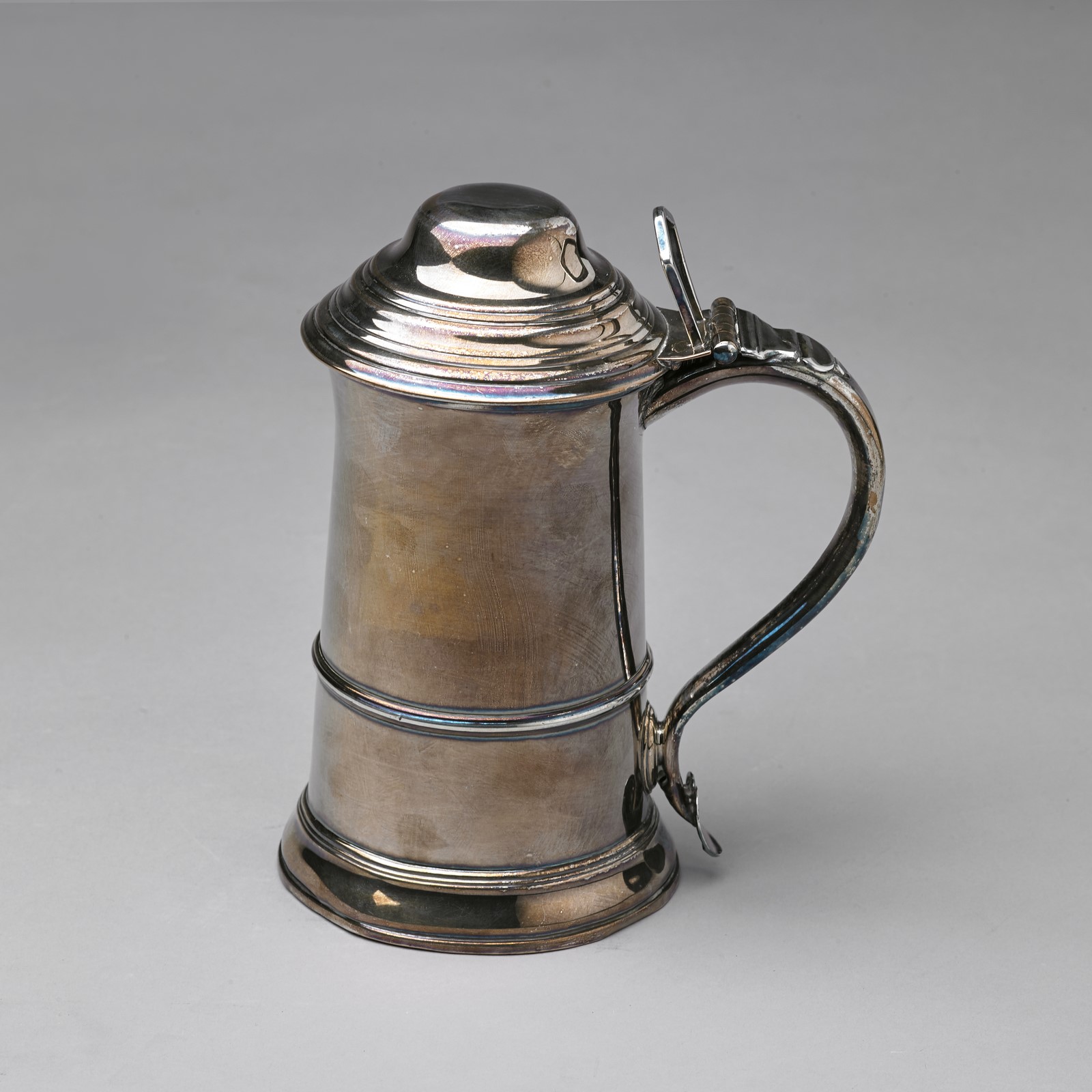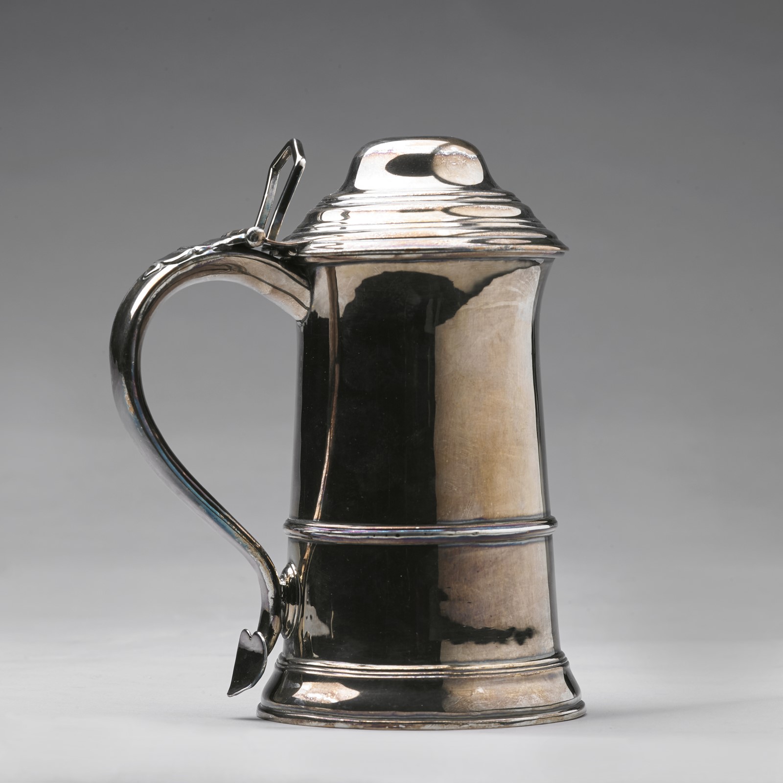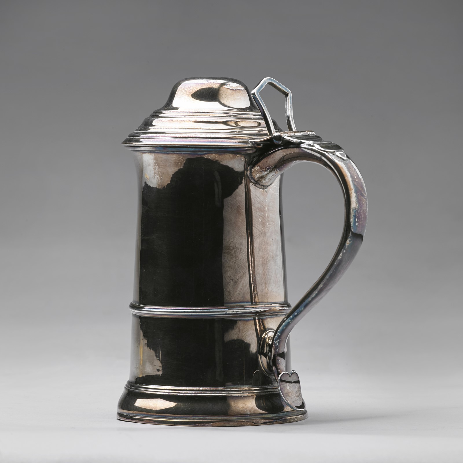 MANIFATTURA INGLESE DEL XIX SECOLO Tankard in argento sbalzato e cesellato. ....