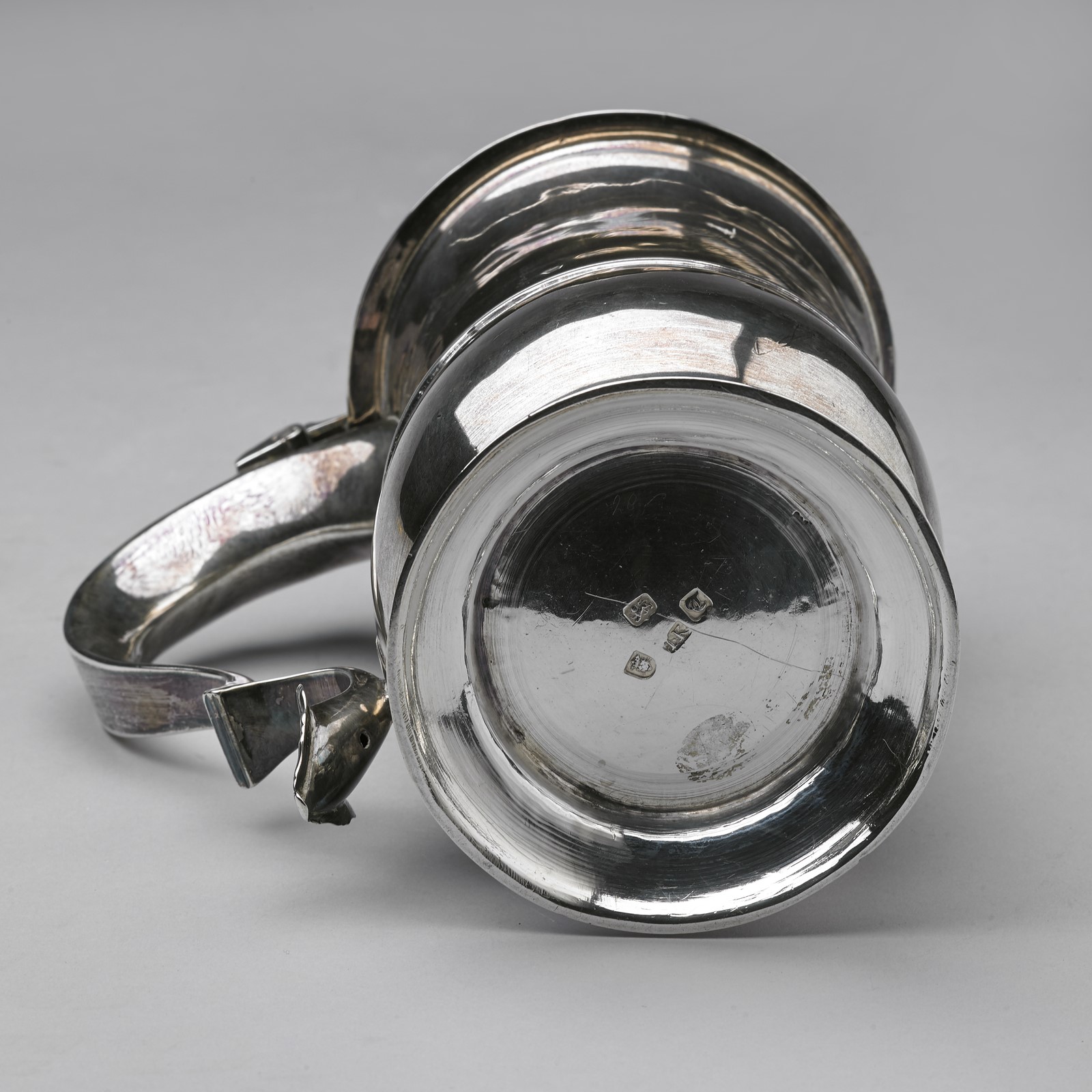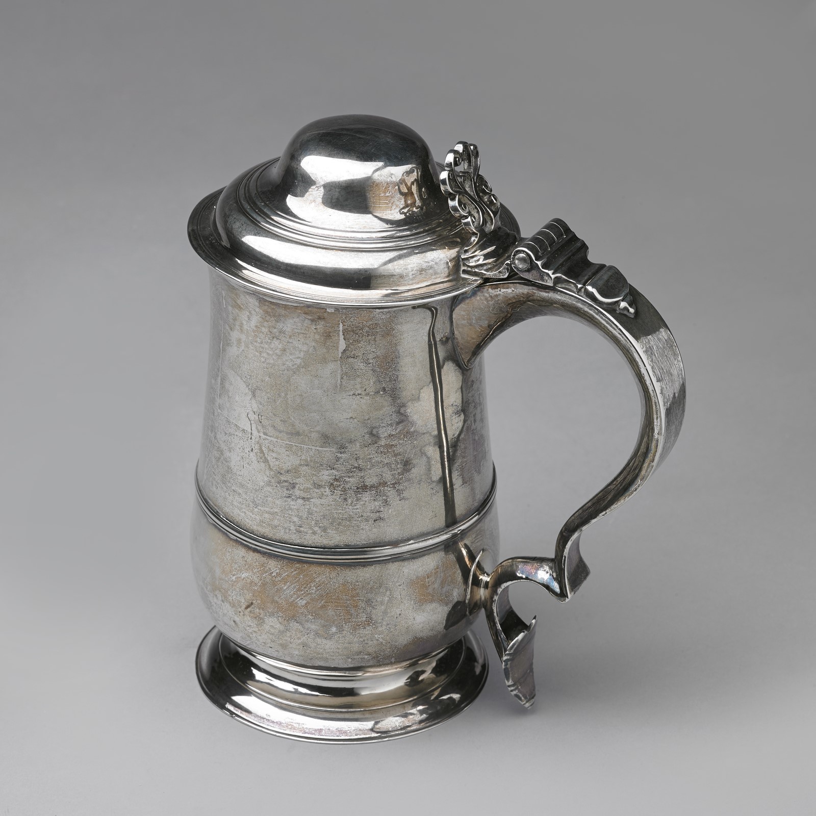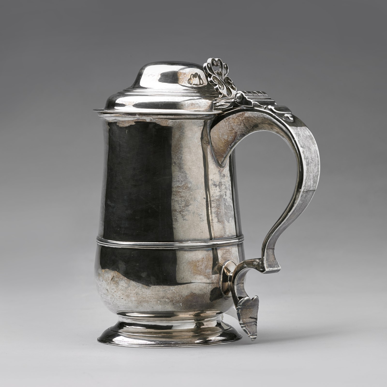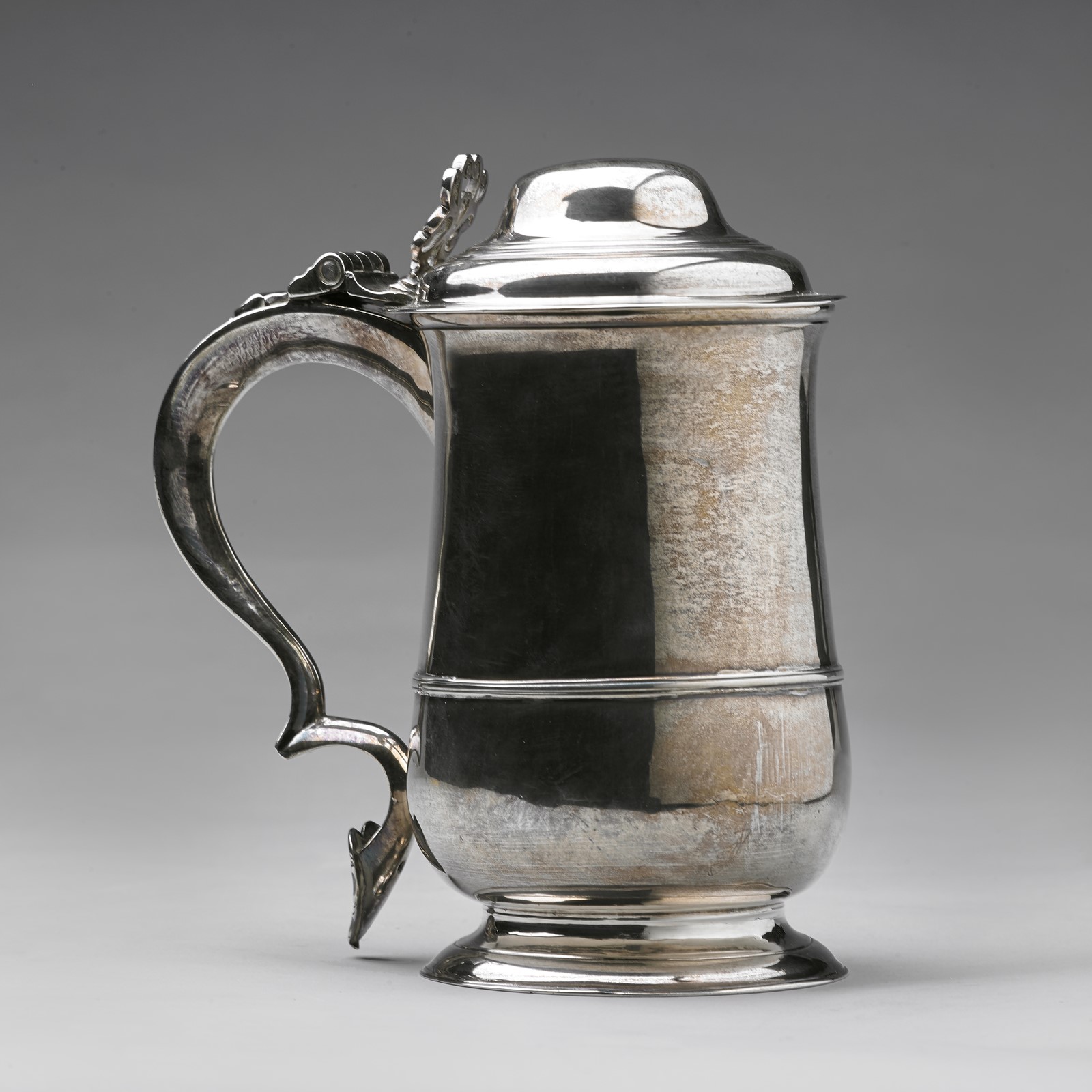 MANIFATTURA INGLESE DEL XIX SECOLO Tankard in argento sbalzato e cesellato. ....