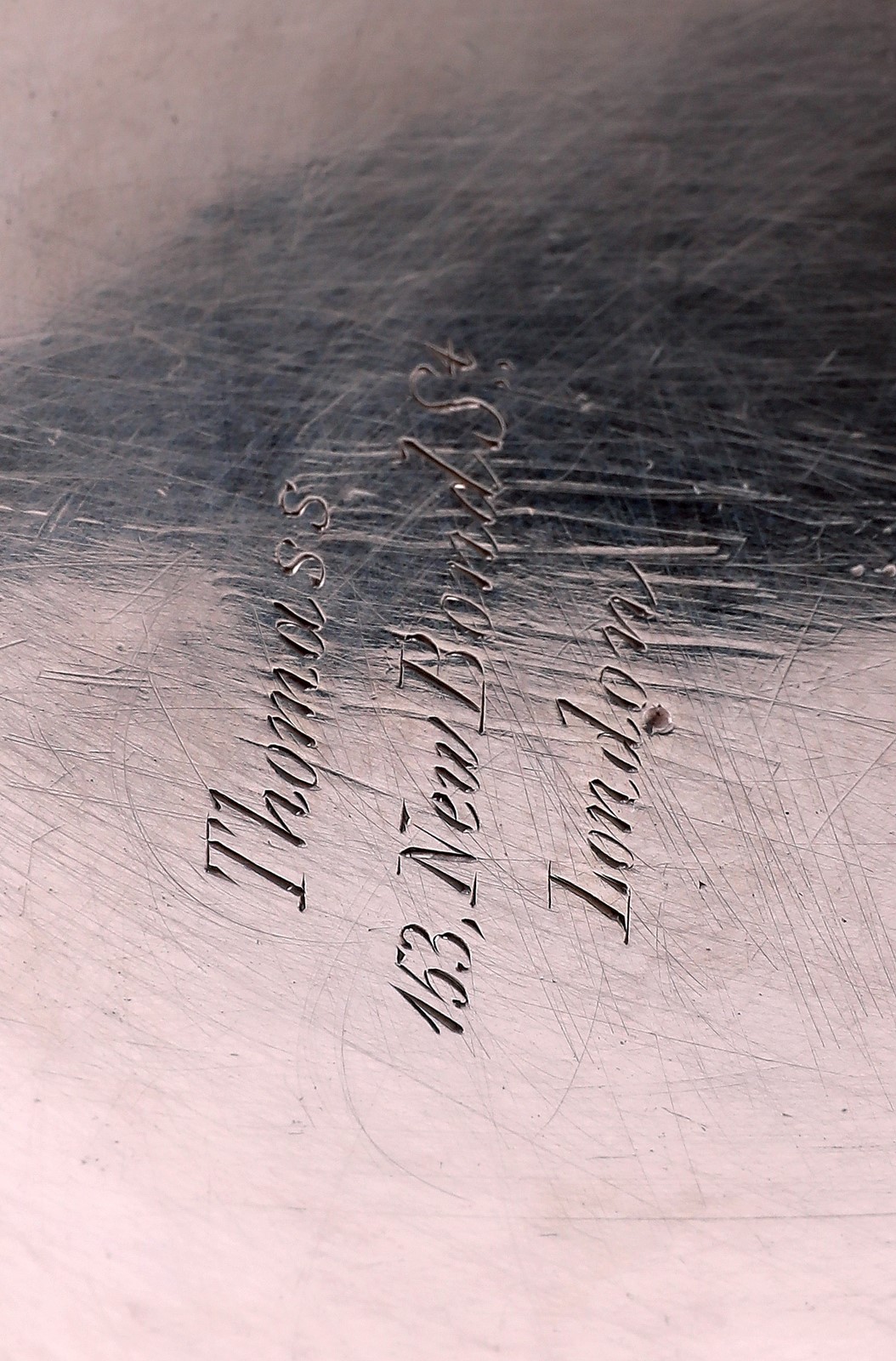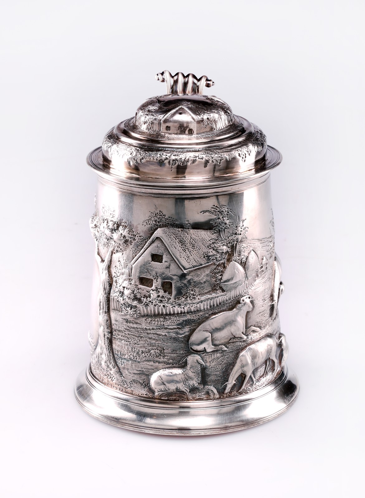 MANIFATTURA INGLESE DEL XVIII SECOLO Boccale in argento periodo Giorgio III, Newcastle. . Cm 17,00 x 21,00. Riporta inciso la dicitura: Thomas S, New Bond Street. Peso gr 984. Presenti punzoni.