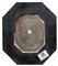 MANIFATTURA ITALIANA DEL XIX SECOLO Coppia di cornici in legno ebanizzato, ottagonali,. . Cm 30,00 x 34,00. con decorazioni in rame sbalzato e pietre dure con due placche in porcellana di Capodimonte raffiguranti "la cacciata dal Paradiso" e "Sacra Famiglia e angeli". Battuta 21x17 cm. Misura della placca 21x17 cm. . Cornice presente