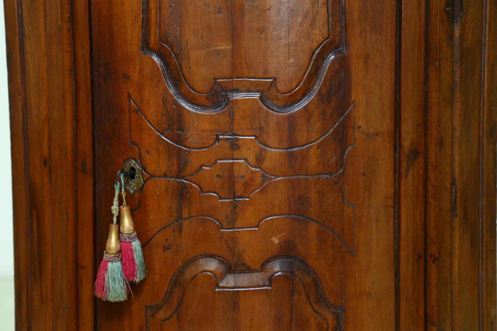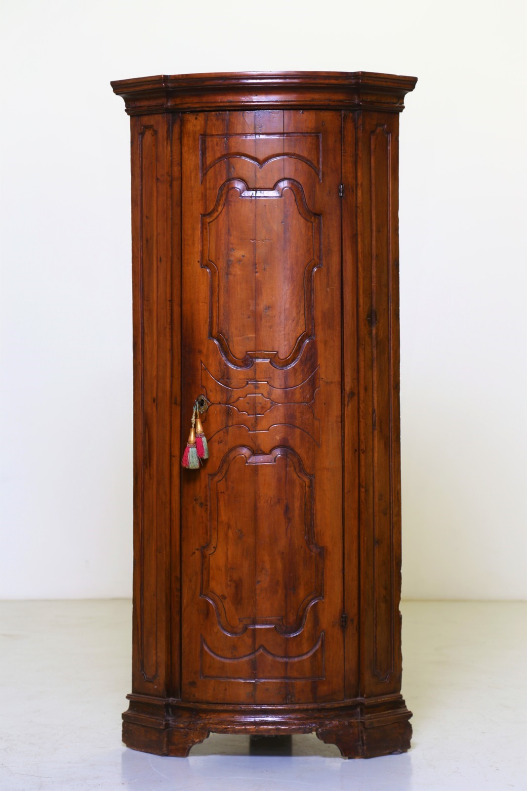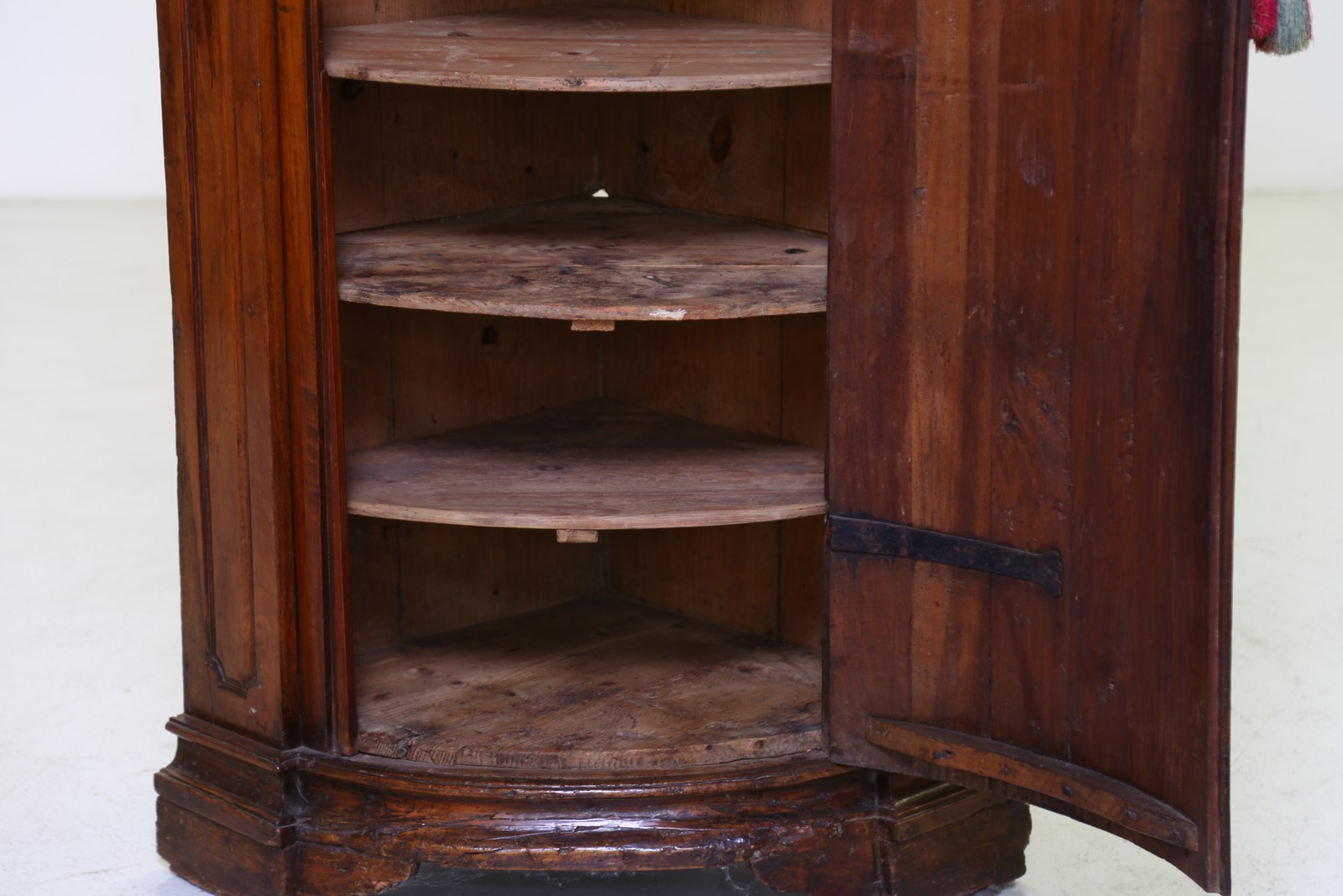 18th CENTURY VENETO MANUFACTURE Walnut corner furniture with a carved shutter. . Cm 204,00. Excellent condition.