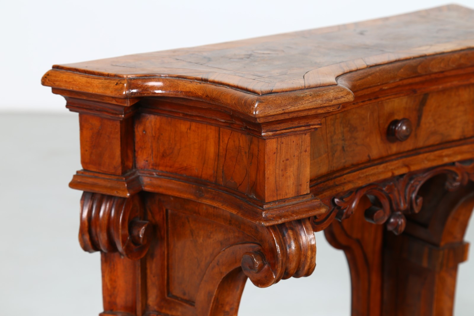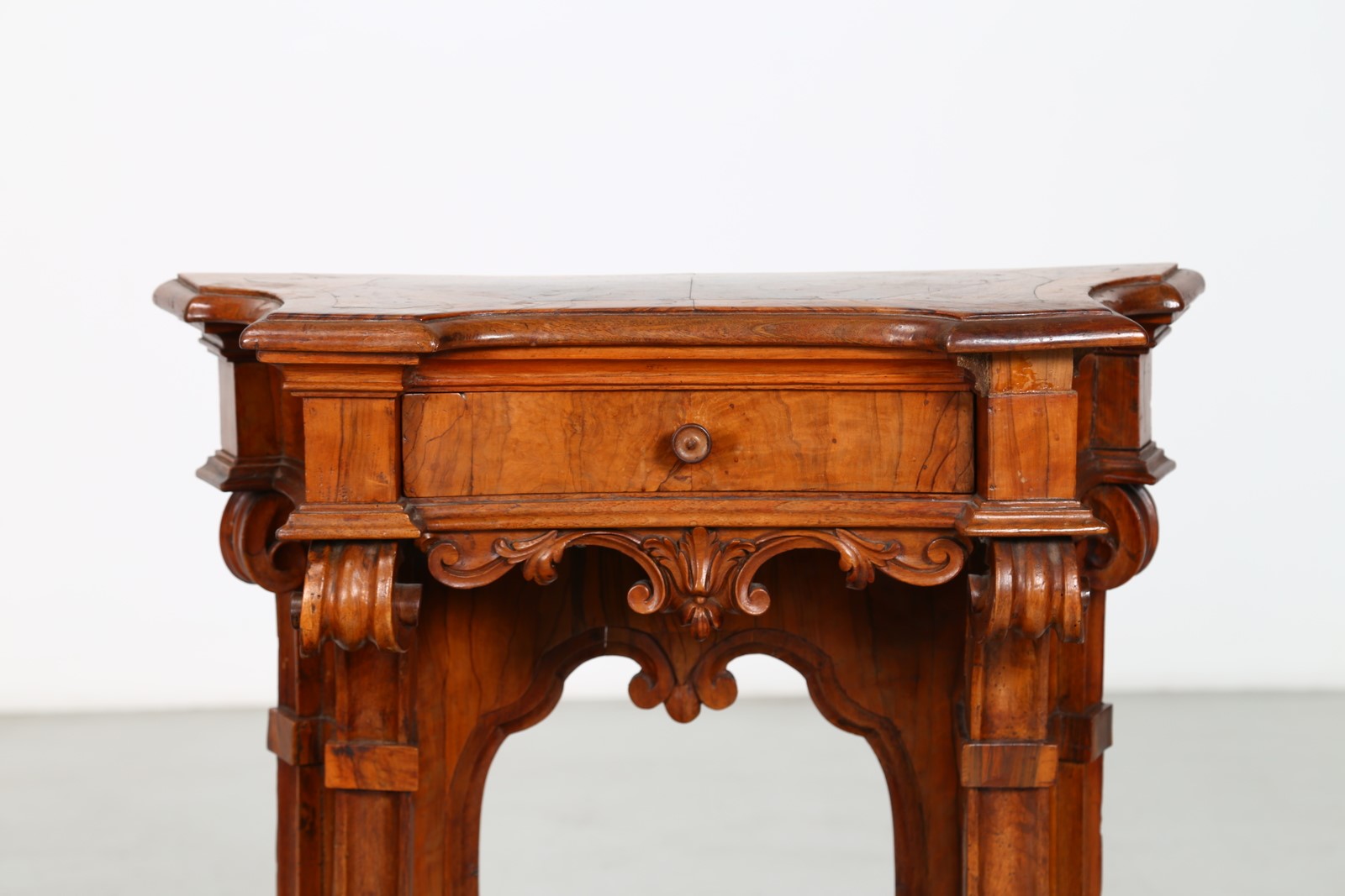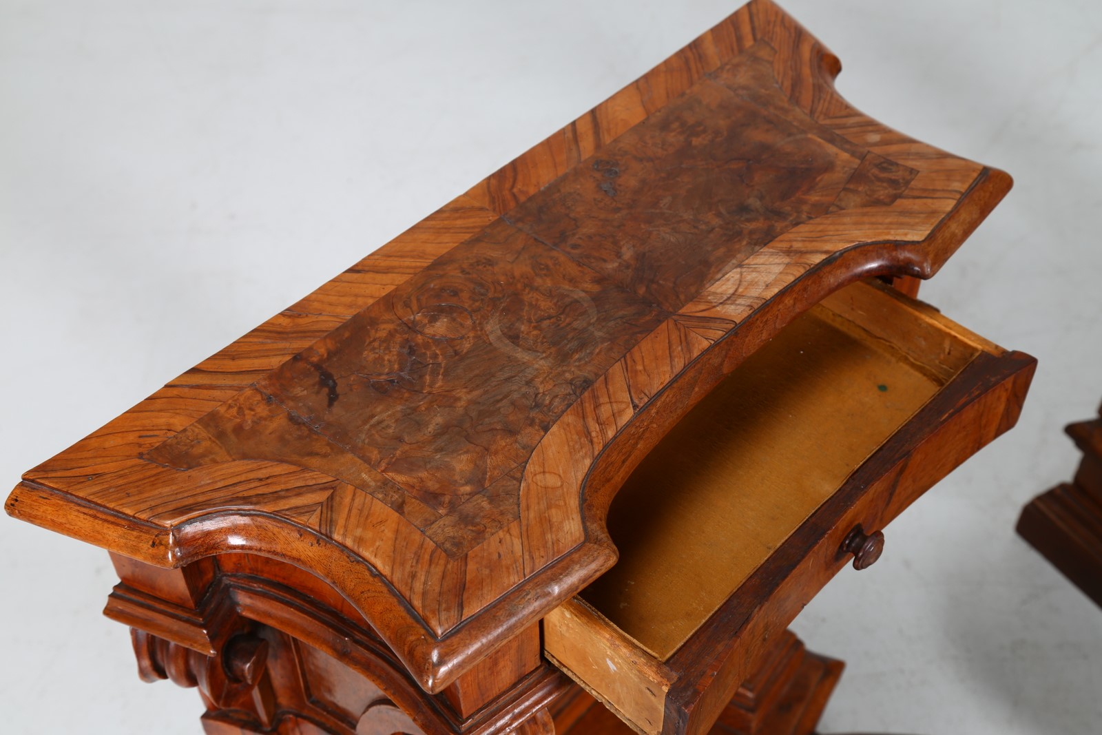 MANIFATTURA VENETA DEL XVIII SECOLO Elegante coppia di inginocchiatoi in legno scolpito, piano mistilineo, fronte a un cassetto. . Cm 67,00 x 89,00 x 62,00.