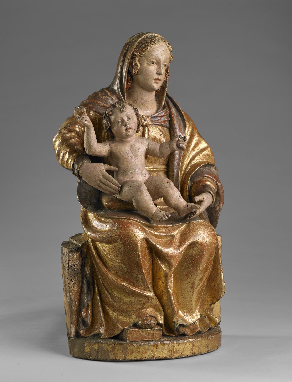 SCULTORE VENETO DEL XV SECOLO Madonna con Bambino in legno policromo e...