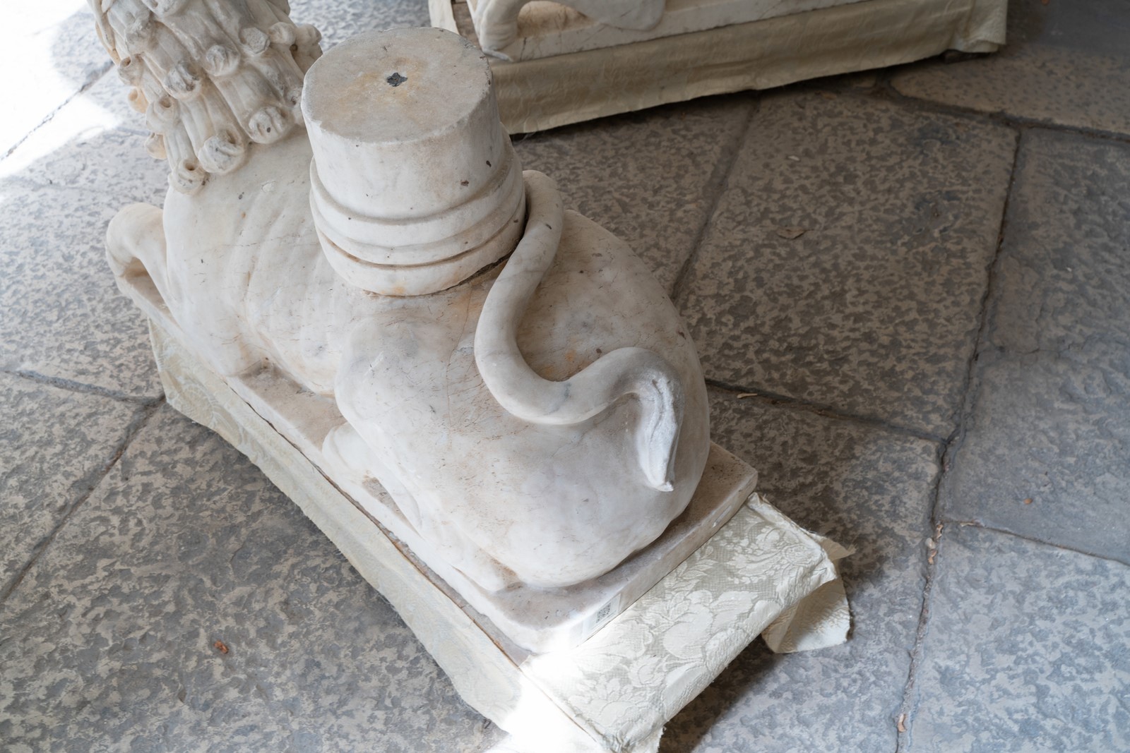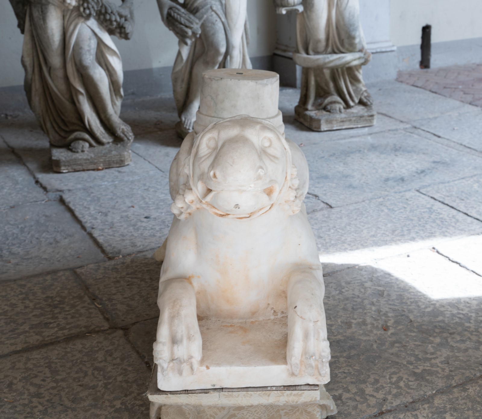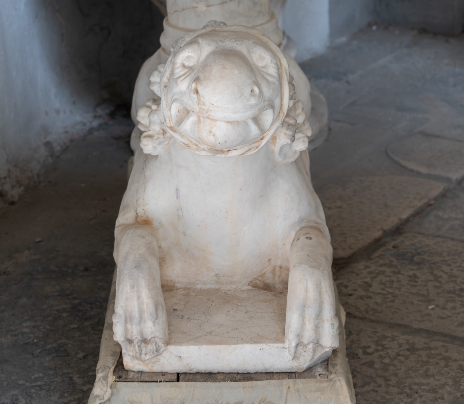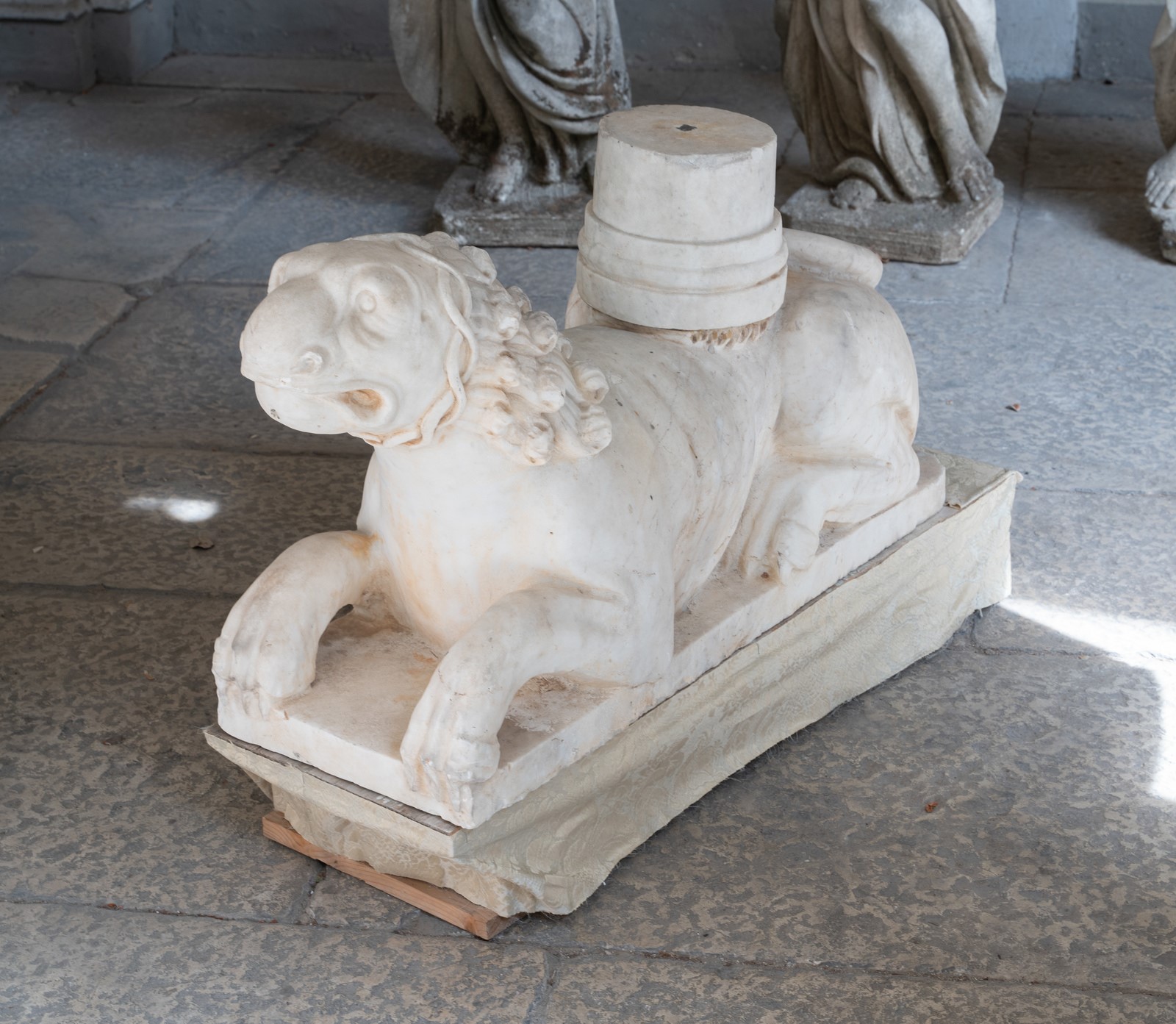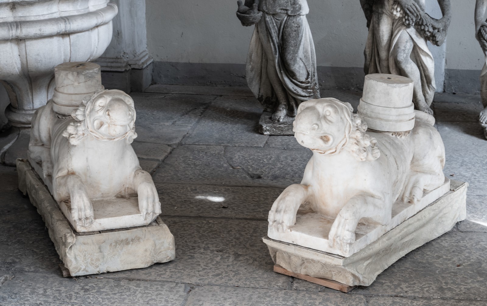 SCULTORE ROMANICO ATTIVO IN ITALIA DEL NORD FRA XIII E XIV SECOLO A pair of stilofori lions in white marble. . Cm 34,00 x 52,00 x 86,00.