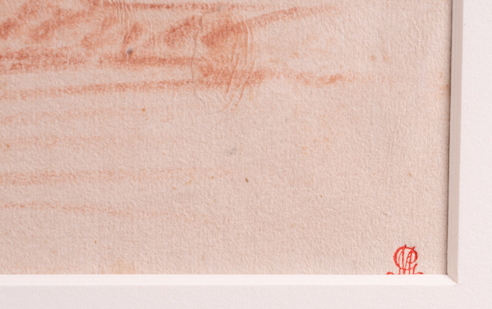 ARTISTA DEL XIX SECOLO Scontro di tori. . Cm 36,00 x 26,00. Pastello rosso. Timbro di collezione in basso a destra.