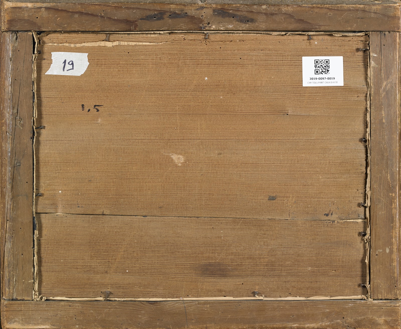 PITTORE VENETO DEL XVIII SECOLO Saint Joseph's passage. Oil on glass. Cm 44,00 x 35,00. . Cornice presente