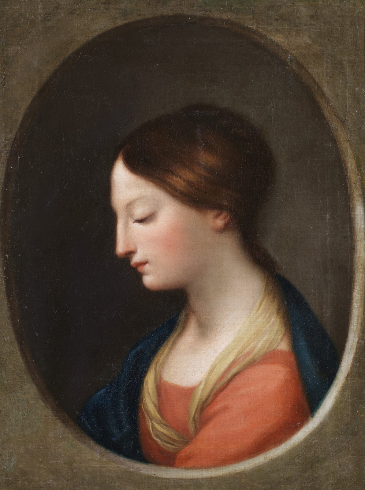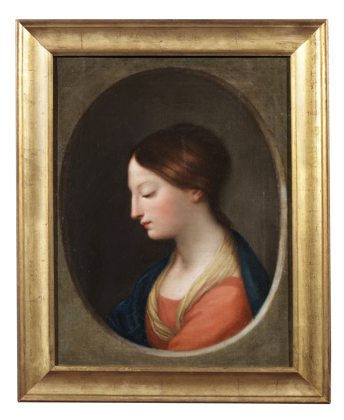 18th CENTURY ARTIST Female face. . Oil on canvas . Cm 48,50 x 63,50. . Cornice presente