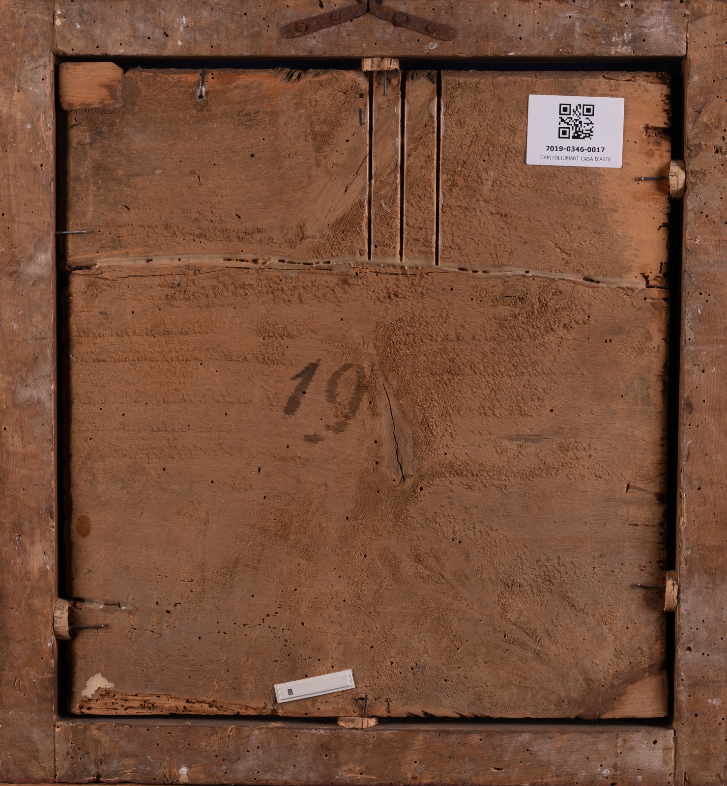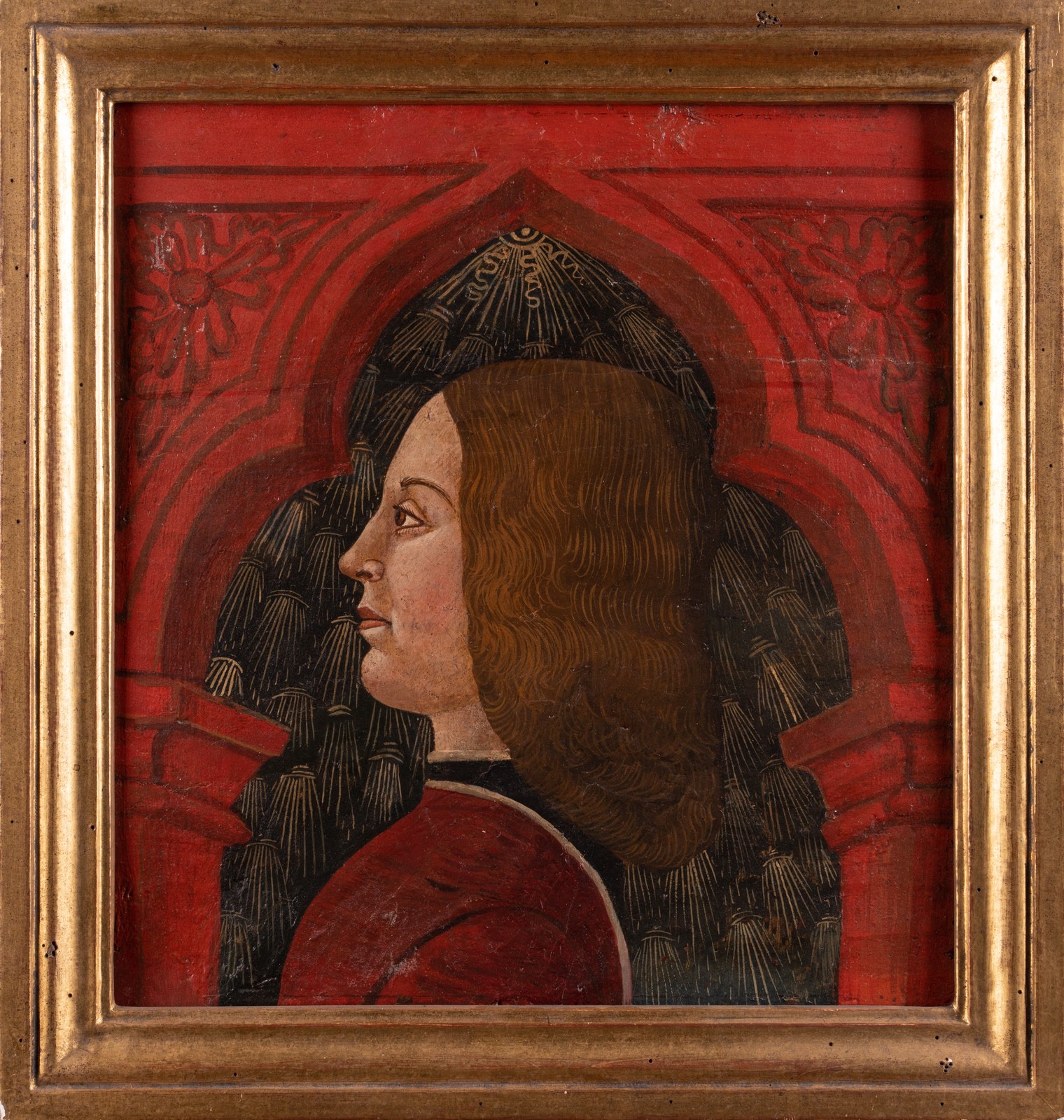 ARTISTA LOMBARDO DEL XVII SECOLO Pannello da soffitto dipinto a raffigurare un uomo di profilo. . Cm 34,00 x 36,50. . Cornice presente