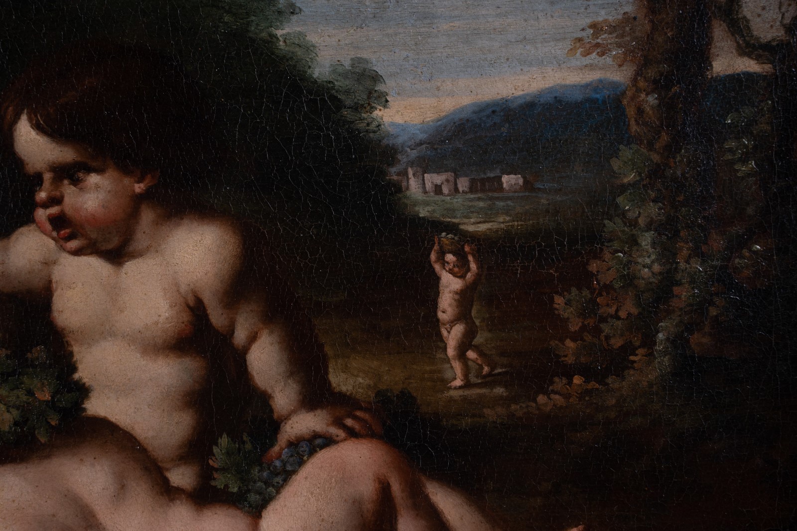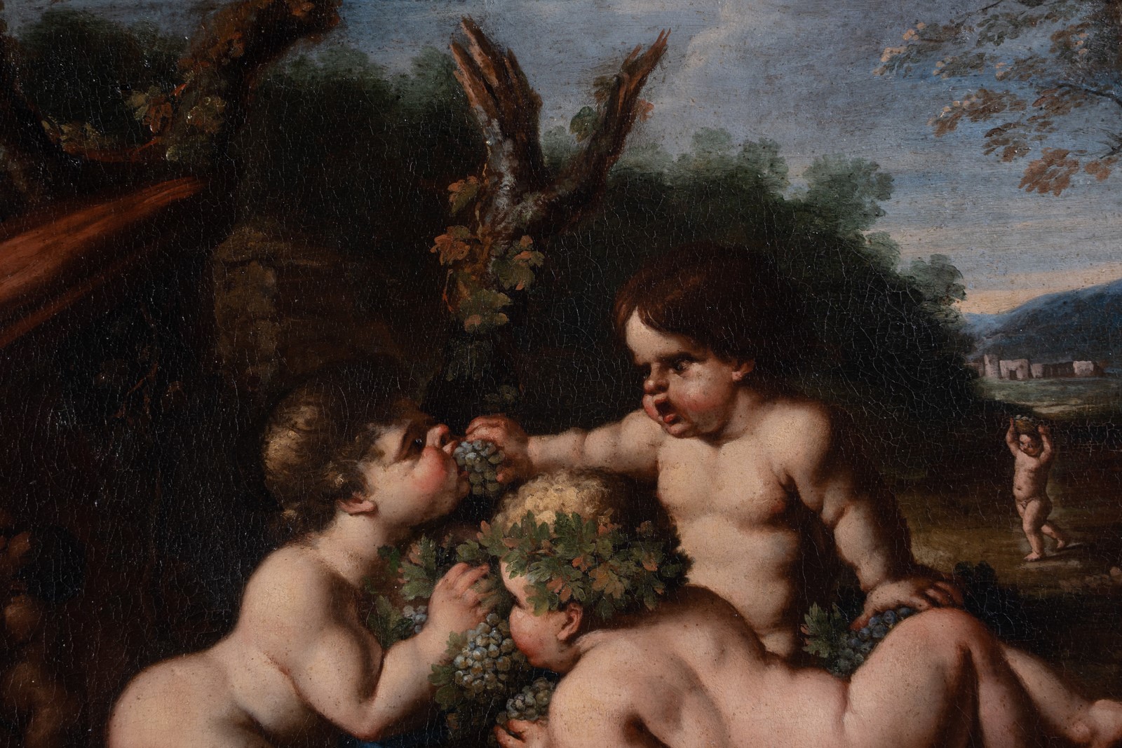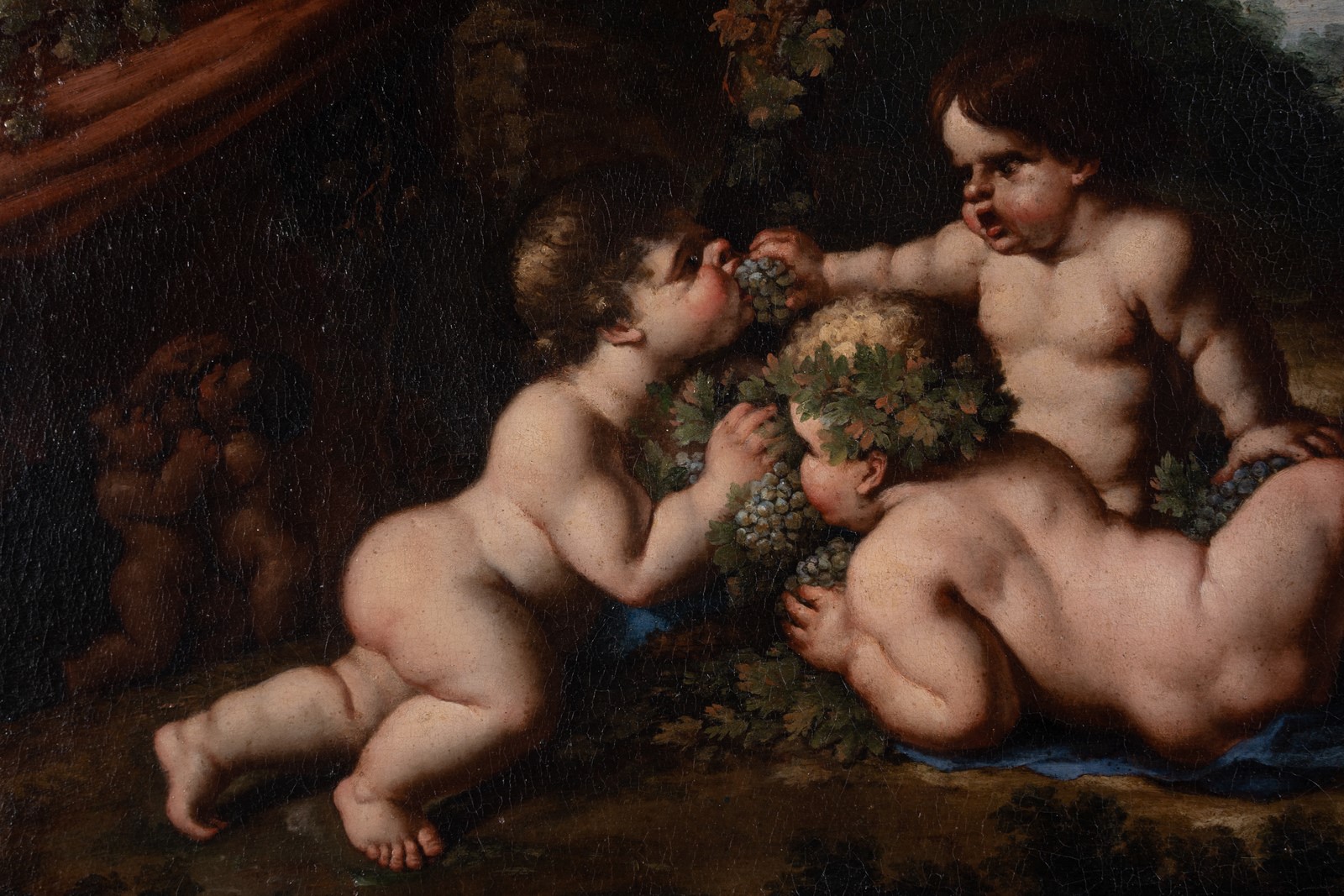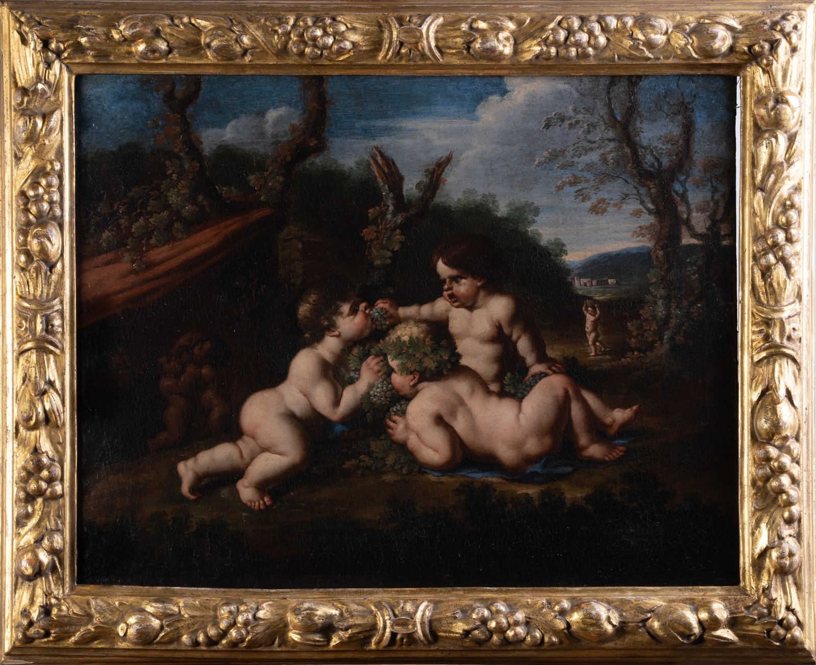 17th CENTURY ARTIST Joyful putti in a landscape. Oil on canvas . Cm 52,50 x 41,00.