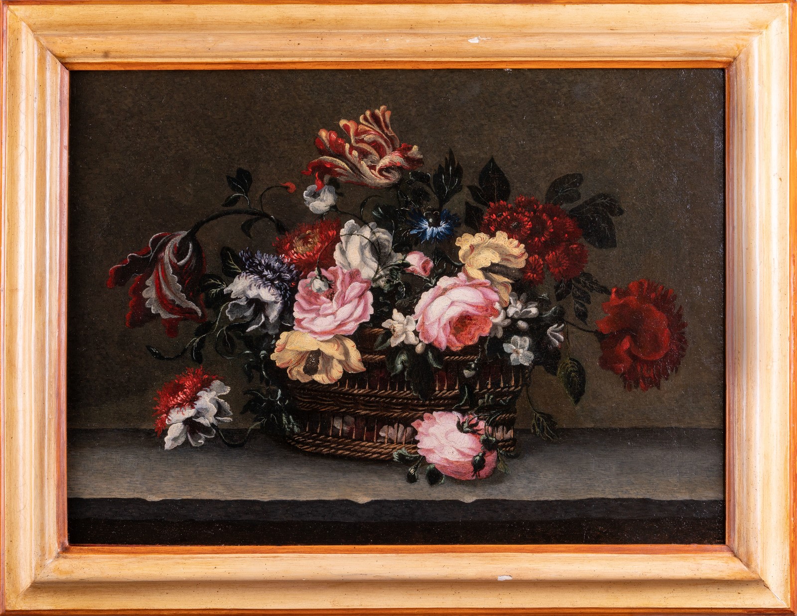CRASTONA (XVII-XVIII) MARGHERITA Still life of flowers with basket. Oil on canvas . Cm 65,50 x 47,50. Provenance: