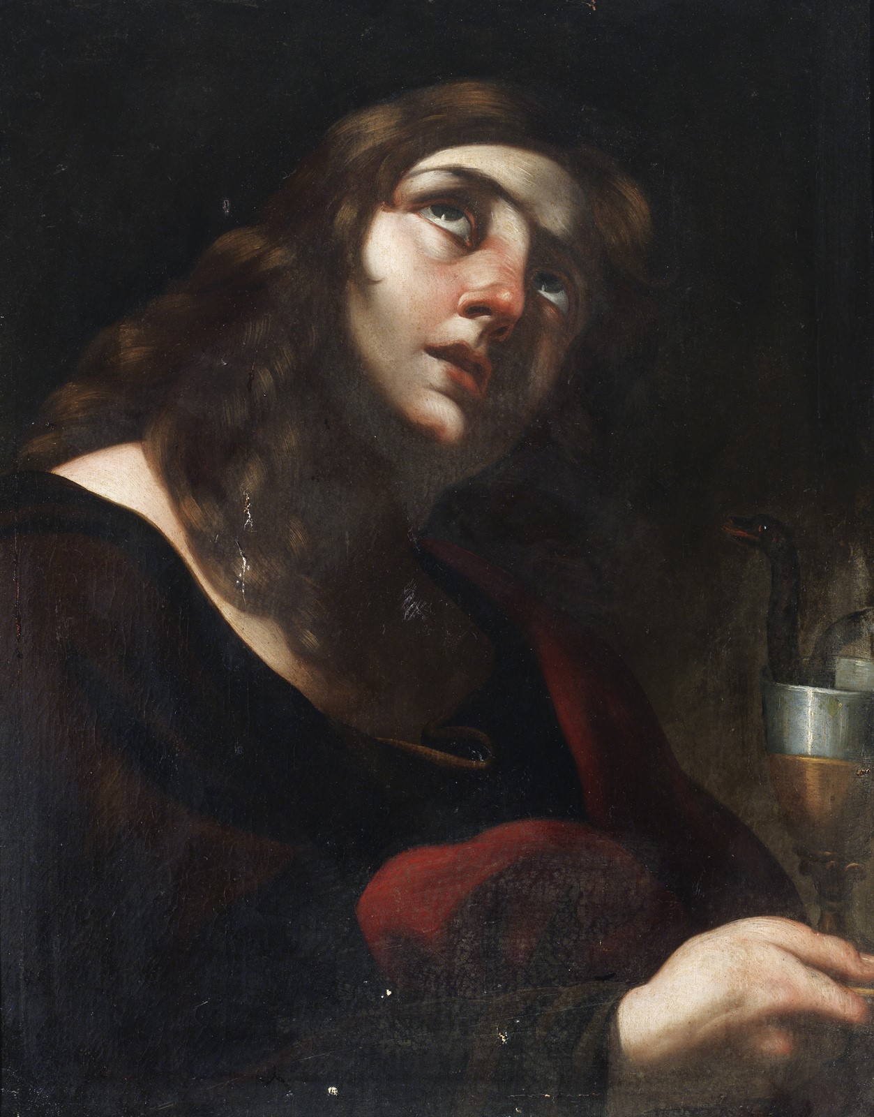 BRANDI GIACINTO (1623 - 1691) San Giovanni evangelista. Olio su tela . Cm 63,00 x 80,00. In prima tela, Cornice antica.