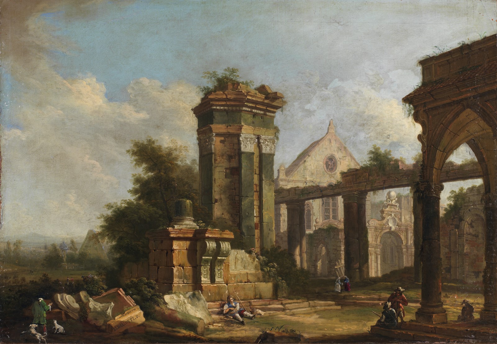 ARTISTA DEL XVIII SECOLO Capriccio architettonico con figure. Olio su tela . Cm 112,00 x 78,00. Per la scheda completa si prega di consultare il nostro sito, www.capitoliumart.it Firmato in basso a sinistra B. L. BELLOTTI F.