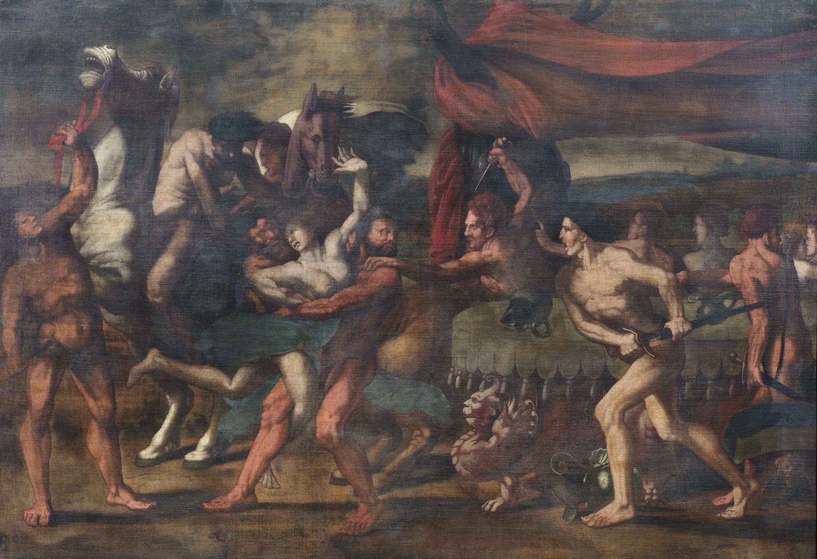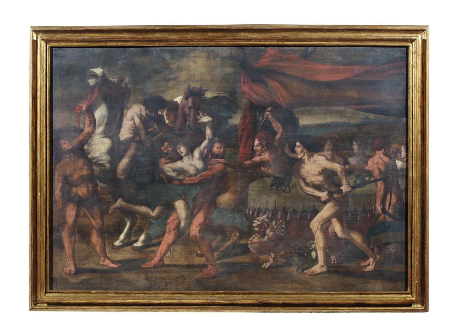 ARTISTA MANTOVANO DEL XVI SECOLO Mythological scene. . Tempera on canvas. Cm 158,00 x 108,00.