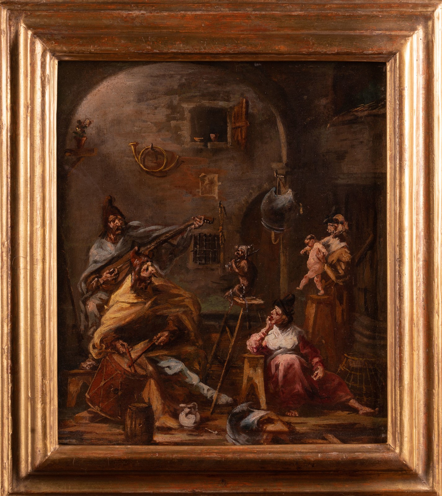 MAGNASCO ALESSANDRO (1667 - 1749) Follower of. Acrobats. . Oil on canvas . Cm 37,00 x 46,00. . Cornice presente