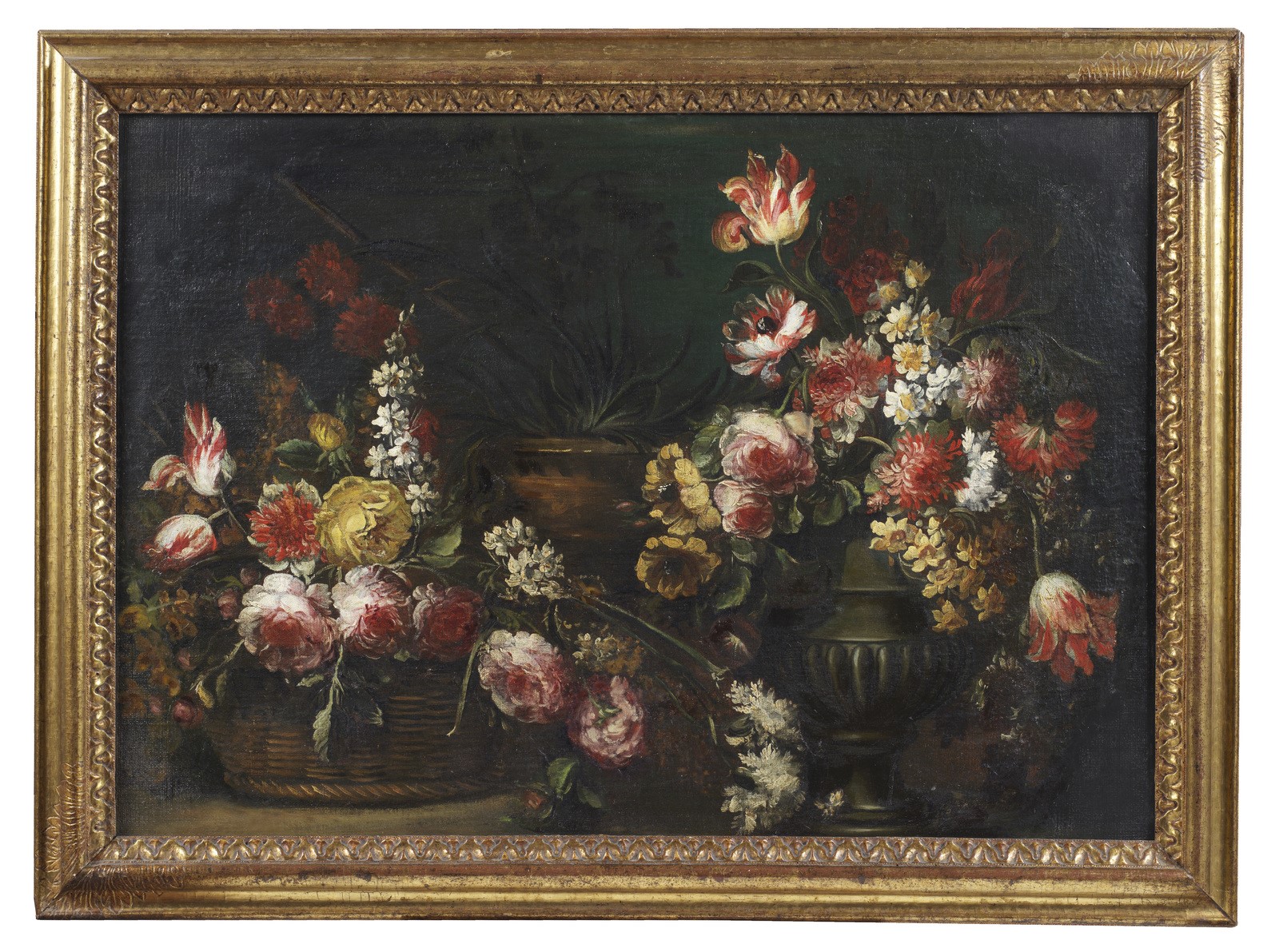MARCHIONNI ELISABETTA (XVII-XVIII SECOLO) Attributed to. Stll life of flowers. . Oil on canvas mounted on board. Cm 102,50 x 77,00. . Cornice presente