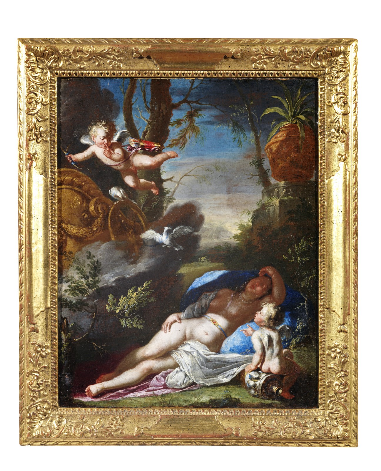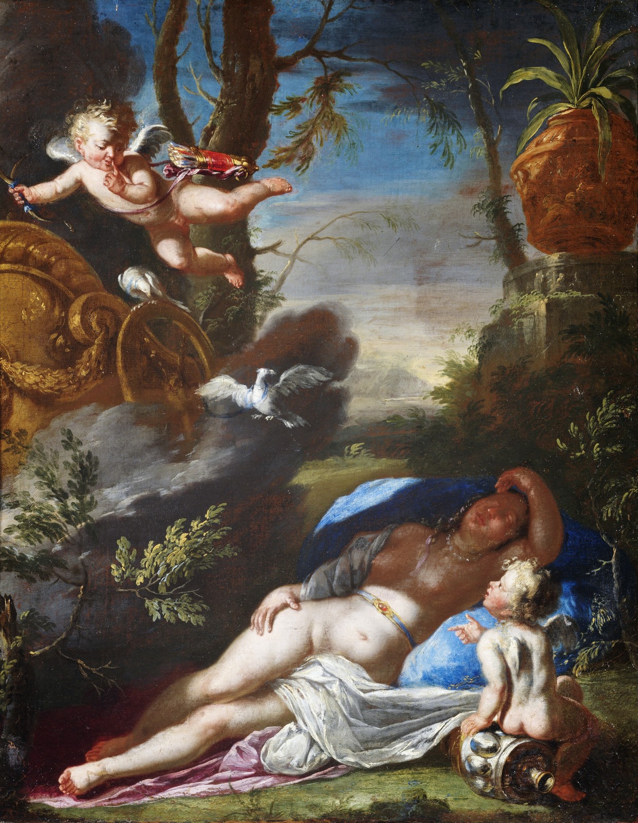 ARTISTA VENETO DEL XVIII SECOLO Venere e amorini. Olio su tela . Cm 50,00 x...