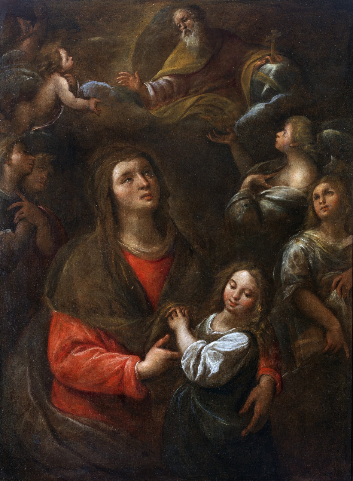 NUVOLONE CARLO FRANCESCO (1608 - 1661) Saint Anne and the Vergin. . Oil on canvas . Cm 97,00 x 131,00. . Cornice presente