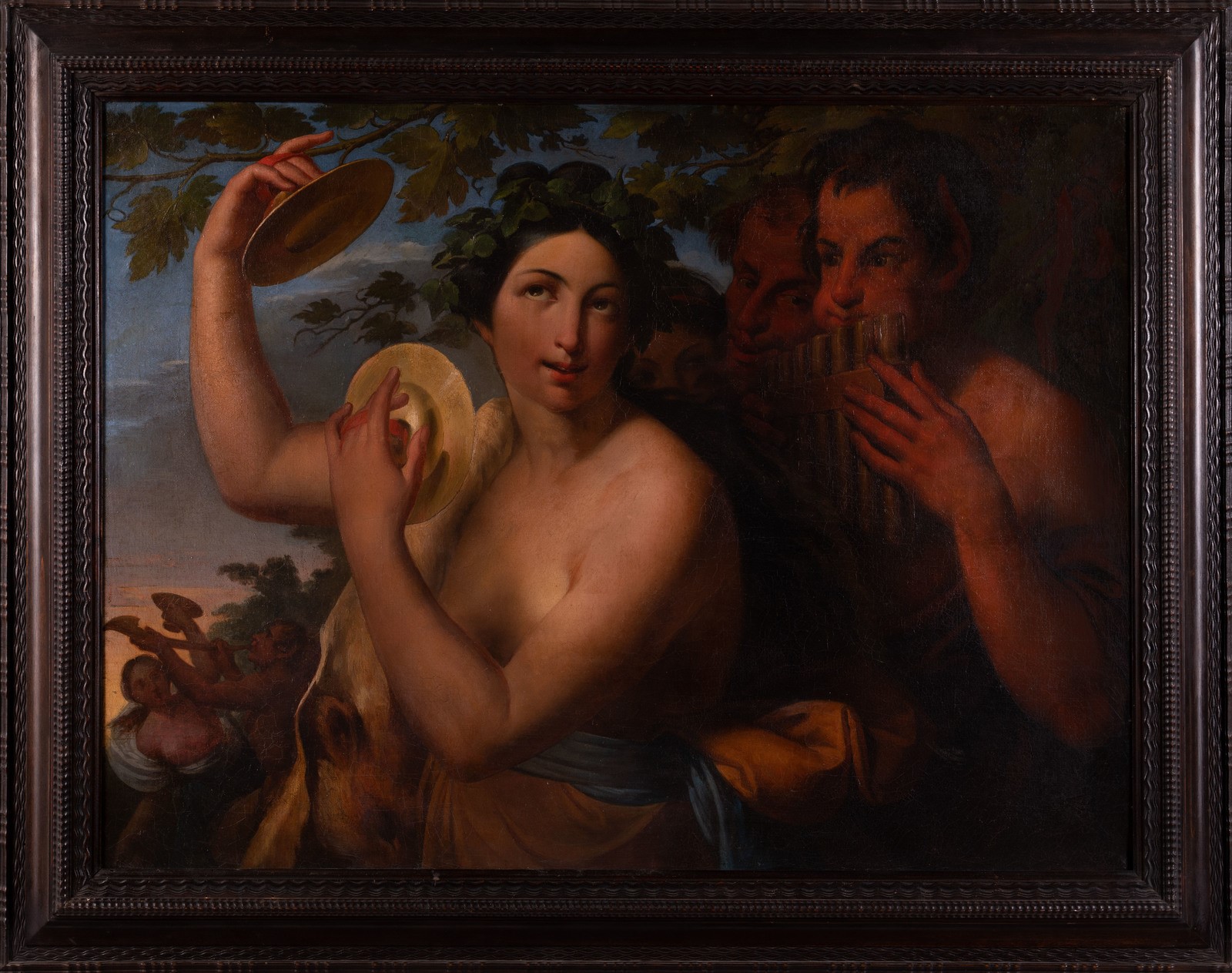 BRJULLOV KARL PAVLOVIC (1799 - 1852) Baccante and joyful satyrs. Oil on canvas . Cm 100,50 x 75,50. Publication: a cura di Alessandra Baroni Vannucci, Musica dipinta - dipinti e disegni dal XV al XIX secolo, Enrico Frascione 2018, p. 36.