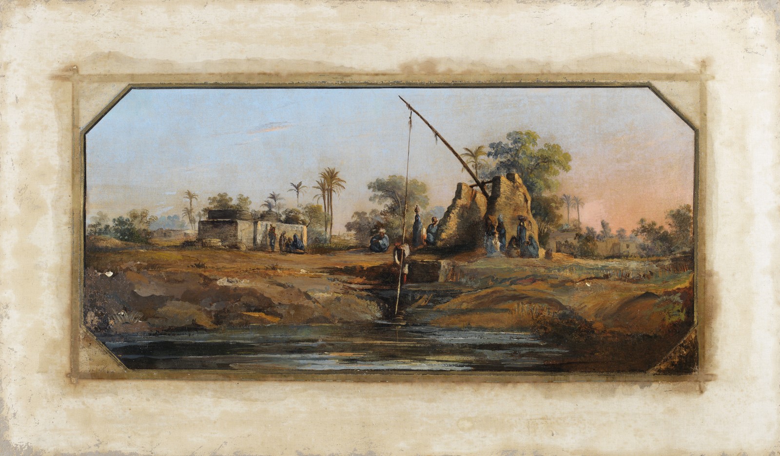 19th CENTURY ORIENTALIST PAINTER The oasis. Oil on canvas . Cm 105,00 x 61,50. . Cornice presente