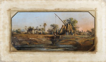 PITTORE ORIENTALISTA DEL XIX SECOLO L'oasi. Olio su tela . Cm 105,00 x 61,50....