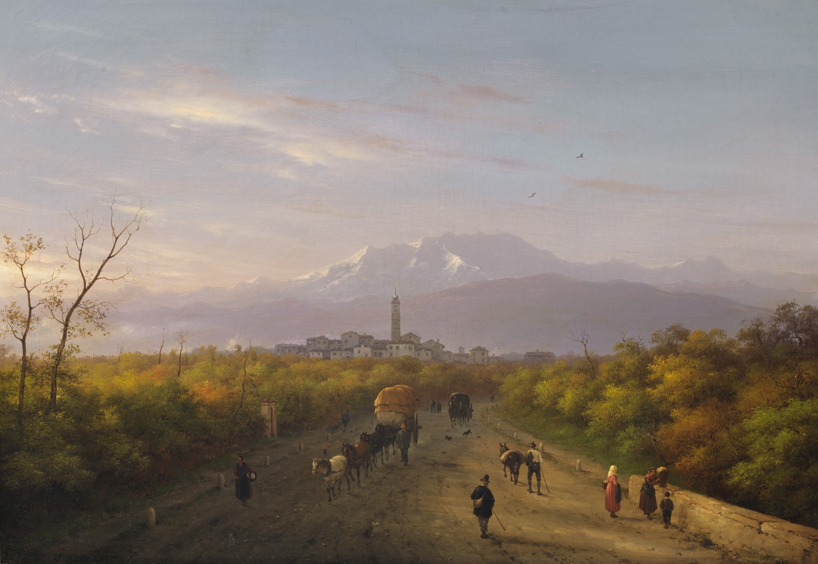 CANELLA GIUSEPPE (1788 - 1847) Landscape with Monte Rosa. . Oil on canvas . Cm 72,00 x 49,50. Signature lower left. . Cornice presente