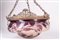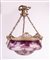 GALLE' Double glass suspension, fuxie decoration and finely etched acid leaves in purple tones on a grey opalescent background, supported by metal chains. . Cm 39,00 x 50,00. Signature in rilief to cameo "Gallè". Epoch 1920. Oral confirmation by Franco Borga.